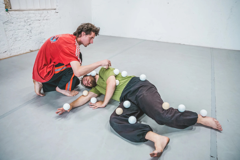 Fyzická explorace přátelství, žonglování se slovy a se vztahy. Flotsam a Jetsam jsou původně námořnické termíny pro objekty, sutiny a trosky, kterých se z různých důvodů zbavily lodě na moři. Flotsam označuje předměty, které loď během plavby omylem ztratila, zatímco jetsam jsou věci, které posádka záměrně hodila přes palubu, aby plavidlu v nouzi odlehčila. Ztratit se může ledacos: propiska, hodinky, první vypadnutý zub, pracovní entuziasmus, kamarádi ze základky. Dokonce i já. I já se můžu ztratit. A také vzpomínky na první návštěvu McDonald’s, texty písní nebo třeba GPS navigace. Jiných věcí se naopak zbavit nelze, i když nás tíží a táhnou ke dnu. Co tam asi tak najdu? Dva muži, nebo dva kluci, ztraceni uprostřed moře míčků. Na horizontu nekonečno možností. Příliv a odliv. Zaoceánský let. Nová země. Stesk po oceánu. Strach z výšek. Strach z hloubek. Sestra, která je v tom všem nepodstatná. A pak ta věc. Fyzická explorace přátelství. Žonglování se slovy i se vztahy. Nic jsem neztratil, a tedy jsem také nic nenašel. Na moři se můžeme ztratit, nebo jen bezcílně plout. Autoři/interpreti: Lukas Bliss, Andrej Štěpita Více