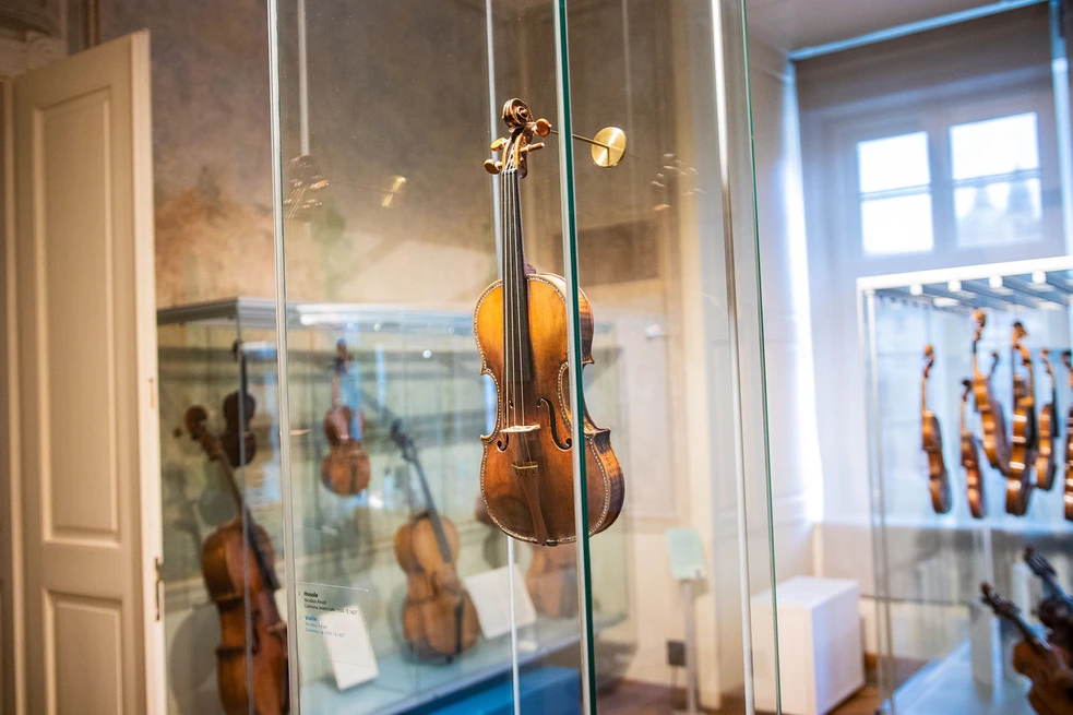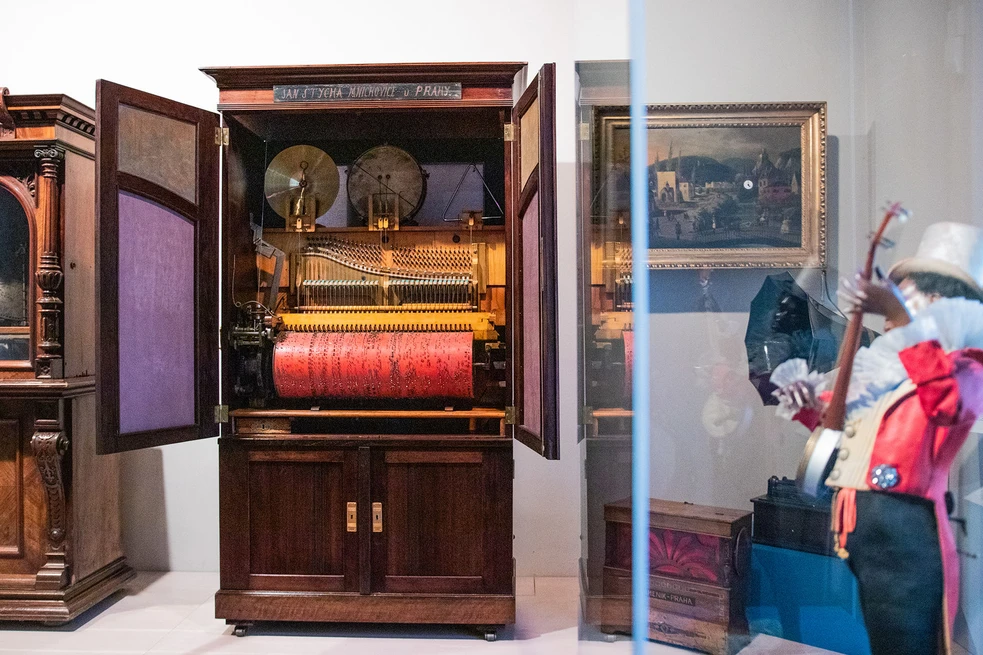 Expozice Člověk – nástroj – hudba představuje hudební nástroje nejen jako pozoruhodné doklady řemeslné a umělecké zručnosti, ale také jako základní prostředníky mezi člověkem a hudbou. Z dnešního světa ruchu a přetížení reprodukovanou a počítači spolutvořenou hudbou všech žánrů, jak ji zprostředkuje vstupní sál expozice, vstoupí návštěvník do intimnějšího prostředí sálů věnovaných dobám, kdy člověk musel vyrobit a vzít do ruky nástroj, aby mohl hudbu hrát a vnímat. Projde historií a pozná jednotlivé způsoby, jak může hudební nástroj tón tvořit, jak vypadal zápis hudby pro různé typy hudebních nástrojů i jak se na ně hrálo a při jakých společenských příležitostech se používaly. Sbírky muzea obsahují notový materiál, vzácné hudební nástroje, staré gramofonové desky, pozůstalosti našich hudebníků. Vzácným exponátem je kladívkový klavír, na kterém hrál W. A. Mozart při své návštěvě v Praze roku 1787 v Ústavu šlechtičen. Více