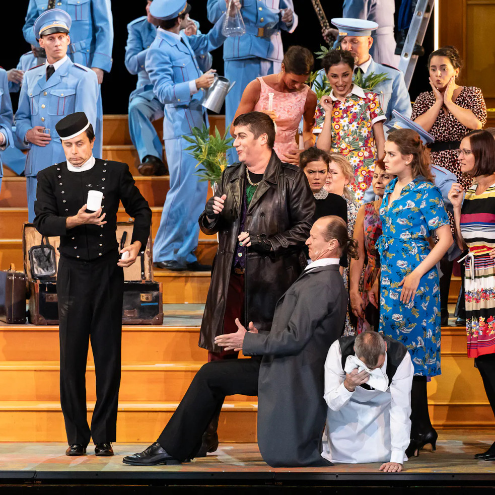 Komedie Nápoj lásky o zázračném elixíru, který vůbec zázračný není, a přesto splní svůj úkol, baví diváky na celém světě už víc než 190 let. Svou čtyřicátou operu složil Gaetano Donizetti během pouhých čtrnácti dnů. Její úspěšná premiéra se odehrála roku 1832 v milánském Teatro alla Canobbiana. Opera je v podstatě mastičkářskou historií, do níž je vložena milostná zápletka, a čerpá bohatě z tradice italského lidového zpěvu. Z prostého příběhu naivního venkovana Nemorina, který se zamiluje do bohaté statkářky Adiny a usiluje o její přízeň prostřednictvím kouzelného nápoje, jenž však není nic jiného než červené víno, vytvořil Donizetti jednu z nejjiskrnějších operních komedií. Hýří skvělými gagy i něžnými melodiemi a je obdivuhodné, jak skladatel dokáže v několika taktech nastínit situaci i vystihnout lidské charaktery: mazaného podvodníka Dulcamaru, který má ve svém sortimentu nejen lék pro omlazení, ale i zázračný lektvar lásky, chvástavého seržanta Belcora, sebevědomou krásnou Adinu i nesmělého Nemorina. Autor: Gaetano Donizetti Účinkují: Sbor Státní opery Orchestr Státní opery Balet Opery Národního divadla Přibližná délka představení: 2 hodiny 35 minut, 1 přestávka (20 minut) Nastudování v italštině, české, anglické titulky Premiéry 22. a 24. září 2023 ve Státní opeře Více o představení datum a čas 9. 1. 2026, 19:00 16. 1. 2026, 19:00 23. 1. 2026, 19:00 10. 2. 2026, 19:00 15. 2. 2026 — 10. 2. 2026, 18:00 28. 2. 2026, 19:00