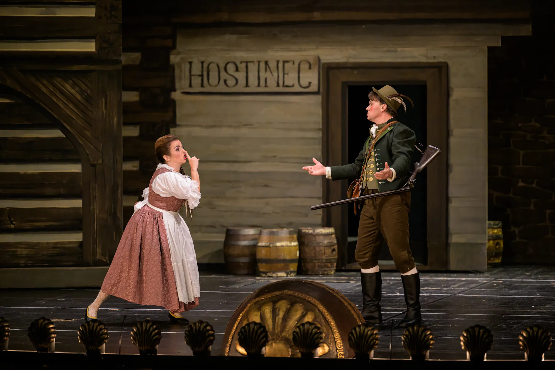 Nového nastudování Smetanova Tajemství se ujal Ondřej Havelka, režisér s vynikajícím citem pro hudební divadlo, jevištní humor i vizuálně poutavý způsob vyprávění příběhu. Tajemství je sedmou a předposlední operou Bedřicha Smetany a zároveň druhou, která vzešla ze spolupráce s libretistkou Eliškou Krásnohorskou. Smetana operu dokončil v červnu 1877 a o rok později uvedl operní soubor Královského zemského českého divadla v Praze její premiéru v budově Nového českého divadla. V Národním divadle byla opera uvedena až v den prvního výročí skladatelova úmrtí, 12. května 1885. Skutečné oblibě se však začala těšit až s příchodem šéfa opery a dirigenta Karla Kovařovice, který si byl plně vědom kvalit tohoto Smetanova vrcholného díla. Krásnohorská připravila pro Smetanu skvělé libreto, které svými motivy může připomínat Shakespearova Romea a Julii právě tak jako třeba pozdější Stroupežnického Naše furianty. V jednom městě žijí dvě znepřátelené rodiny, Malinovi a Kalinovi. Jejich otcové a zároveň konšelé mezi sebou po léta soupeří o společenské postavení. Kalina tím chce především ukázat, že není takový chudák, za jakého jej Malina kdysi měl, když mu odmítl dát za ženu svoji sestru Rózu. A nyní k tomu všemu přibyla další nesnáz – vzájemná láska jejich dětí Blaženky Malinové a Víta Kaliny. K překonání všech překážek a vzájemných rozepří přispěje náhodou objevený starý vzkaz mnicha Barnabáše, který přivede Kalinu na cestu k pokladu. Jsou však hromady zlata vždy tím nejcennějším, co lze najít? Nastudování: v češtině, české, anglické titulky Vhodné pro publikum od 6 let. Premiéra: 24. květen 2024 Více datum a čas 23. 11. 2025, 17:00 30. 11. 2025, 19:00 4. 12. 2025, 19:00 11. 12. 2025, 19:00 14. 12. 2025, 19:00