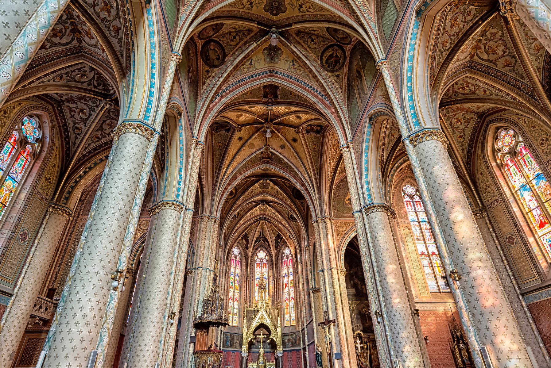přehled otevírací doba o místě Novogotický kostel zasvěcený sv. Ludmile tvoří výraznou dominantu Vinohrad. Byl postaven podle projektu arch. Josefa Mockera v letech 1888—1892. Dvě 60metrové věže, každá se 2 zvony, jsou jako dvě ruce sepjaté k modlitbě. Kostel je cihlová trojlodní bazilika s příčnou lodí ve tvaru kříže, jejíž interiér upoutá barevností vitráží s postavami světců a bohatou sochařskou a malířskou výzdobou. více o místě otevírací doba leden—prosinec po—so 11:00—16:00 ne 15:30—17:30 Prohlídka je možná mimo časy bohoslužeb. více o otevírací době bezbariérovost bezbariérový vstup z boku kostela otevírací doba leden—prosinec po—so 11:00—16:00 ne 15:30—17:30 Prohlídka je možná mimo časy bohoslužeb. PRAVIDELNÉ ŘÍMSKOKATOLICKÉ BOHOSLUŽBY po—so 16:30 ne: 9:00 (mimo července a srpna), 11:00 a v 16:30 každou 1. neděli v měsíci v 9:00 je mše latinská, čtení a promluvy v češtině historie Novogotický kostel sv. Ludmily, který tvoří dominantu náměstí Míru, je trojlodní bazilikou z režných cihel s příčnou lodí v podobě kříže a se dvěma vysokými věžemi na vstupním průčelí. Byl postaven podle projektu architekta Josefa Mockera v letech 1888—1892. Stavbu financovala vinohradská obec za značné pomoci Spolku pro podporu stavby votivního chrámu Páně Sv. Ludmily na Královských Vinohradech. Po dostavbě vysvětil kostel v roce 1893 pražský arcibiskup kardinál František Schönborn. Kromě křížení lodí se v chrámovém půdorysu kříží ještě prostory sakristie a křestní kaple při chóru. Dvojice věží po stranách vstupního průčelí má pět nestejně vysokých podlaží. Věže jsou vysoké 60 m a jsou zakončené vysokými osmibokými jehlancovými střechami. Každá z věží nese dva zvony a má v průčelí vysoký trojúhelníkový štít osazený hodinami. Nad vysokým vstupním schodištěm je hlavní portál a nad ním v tympanonu tesaný reliéf Krista se svatým Václavem a Ludmilou od Josefa Václava Myslbeka a emblémy evangelistů od Jana Čapka. Ve štítech hlavní a vedlejší lodi jsou sochy českých patronů: Svatá Ludmila od Ludvíka Šimka, Cyril a Metoděj od Bernarda Seelinga, Svatý Prokop od Františka Hergessela a Svatý Vojtěch od Antonína Procházky. Interiér chrámu poutá svou barevnou krásou i námětovým bohatstvím. Autorem bohaté polychromie uvnitř je Jan Jobst, barevná okna s postavami světců byla vytvořena podle kartónů Fratiška Sequense, Františka Ženíška, Adolfa Liebschera a Františka Urbana. Některá okna byla za 2. světové války zničena při náletu na Prahu a později byla vhodně nahrazena novými. Mladší, secesní boční oltáře jsou vyřezány podle kreseb Jana Kastnera a Štěpána Zálešáka. Kazatelna je od Jiljího Ziky a Antonína Procházky. Jesličky pro chrám vytvořil řezbář A. Charvát. Od roku 1974 byl kostel uzavřen pro opravy interiéru, v roce 1984 otevřena opravená část chrámu a v roce 1992 otevřen konečně celý kostel. Oslavy ukončení oprav vyvrcholily slavnou bohoslužbou slouženou arcibiskupem Miloslavem Vlkem. V roce 1993 světil biskup Jaroslav Škarvada v chrámu sv. Ludmily nový zvon, dílo zvonařské rodiny Dytrichovy z Brodku u Přerova.