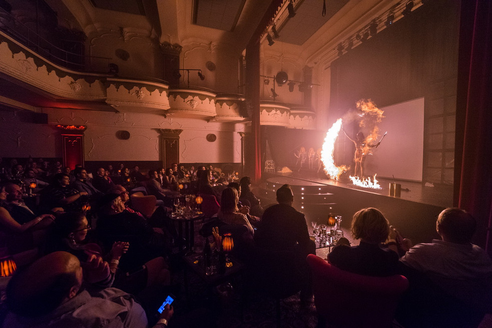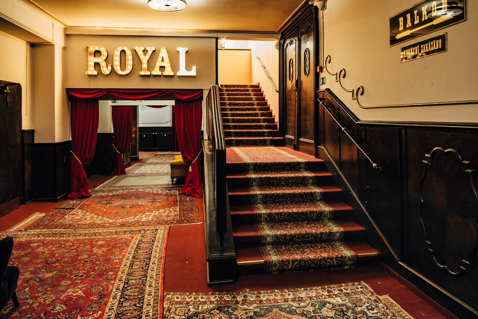 přehled o místě Royal, multikulturní podnik, vznikl ve zrekonstruovaném prostoru bývalého kina Bio Illusion. Uvádí mj. kabaretní show Prague Burlesque Show, příležitostně divadelní hry, filmy a koncerty. Stal se oblíbeným místem pro konání soukromých akcí v jedinečných prostorech s prvorepublikovou atmosférou a profesionálním audiovizuálním zařízením. více o místě V době svého založení velkouzenářem Emanuelem Maceškou v roce 1929 bylo toto kino největším a nejmodernějším v Praze. Velká část původního kování a zařízení včetně vitráží v oknech a broušených světel byla zachována, díky čemuž celý prostor vytváří působivý dojem časů první republiky. To vše je vkusně kombinováno s moderními prvky a interiérem, který ve vás zanechá pocit, že jste vstoupili do skutečného královského paláce. historie Biograf založil roku 1929 Emanuel Maceška coby největší a nejmodernější kino v Praze. Biograf se původně jmenoval Maceška, na počest vlastníka, avšak později byl název změněn na Illusion. Netrvalo dlouho a místo získalo mezi Pražany obrovskou popularitu. Mnozí návštěvníci se na vyprodaná představení nedostali. Všechno se však změnilo vypuknutím druhé světové války. Nejdříve bombardování, posléze komunistický režim; ten především změnil osud biografu na dlouhou dobu. Na základě Benešových dekretů vydaných na konci okupace byl biograf zkonfiskován a předán Státnímu filmovému podniku. Pan Maceška pozbyl všech vlasnických práv. Po Sametové revoluci bylo vlastnictví navráceno rodině Maceškových, kteří biograf vlastní dodnes. V únoru 2014 se rodina dohodla na jeho pronájmu. Nájemcem se stal Francouz Jean-Christophe Gramont. Jedním z prvních rozhodnutí Jean-Christopha bylo změnit jméno Illusion na Royal — jako dokreslení královského statutu této městské části, která je nerozlučně spjata s érou Karla IV. a slavných královských vinohradů, které zde nechal založit. Jean-Christophe také doufá, že v tomto názvu zazní elegance a styl, které kdysi biograf tak proslavily. Oživení ducha a slávy kulturní scény 30. let zadal Jean-Christophe mladé a talentované pražské architektce Renatě Slámkové. Ona také vkusně vybírala výzdobu a nábytek, přičemž se inspirovala obdobím tolik ctěné První republiky (1918-1938) a stylem secese, které sladila s moderní dobou a do kterých vpracovala potřebné vymoženosti 21. století.