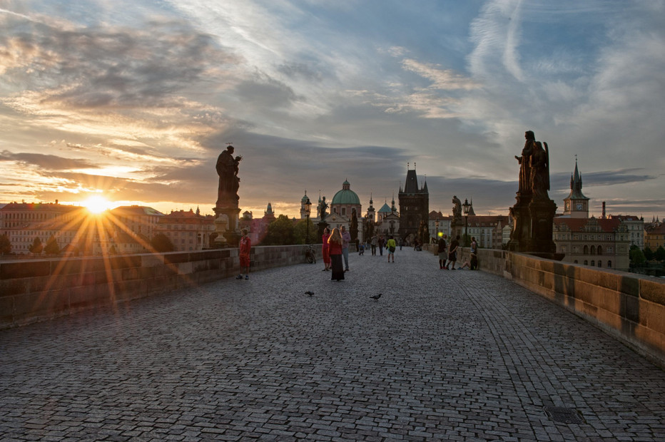 Pískovcová socha sv. Ludmily učící číst malého Václava vznikla po roce 1720, patrně v dílně M. B. Brauna a nejprve stála na Pražském hradě. Postava sv. Ludmily drží v levé ruce závoj, jímž byla uškrcena, pravou rukou ukazuje do Bible, v níž se její vnuk sv. Václav učí číst. Na reliéfu podstavce je zobrazena Václavova vražda. Dílo bylo na most umístěno jako náhrada za sousoší sv. Václava mezi dvěma anděly od O. Mosta z roku 1696, které se zřítilo do Vltavy při povodni v roce 1784. Na mostě je v současnosti instalována kopie od J. Kačera a M. Kačerové z roku 1999, originál je ve vyšehradské Gorlici. Torzo původní Mostovy sochy se nachází v Lapidáriu Národního muzea, některé součásti byly z vltavského dna vyzvednuty až roku 2004. Zdroj: Prague City Tourism