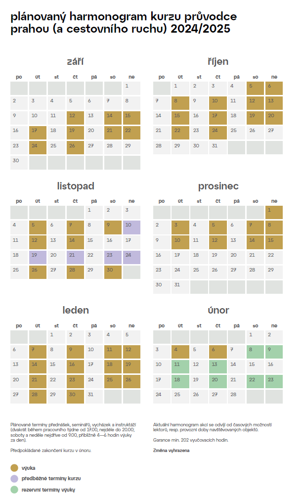 Náplň tohoto kurzu je totožná s náplní Rekvalifikačního kurzu průvodce Prahou, avšak přednášky (zhruba 2/3 kurzu) je možné absolvovat online prostřednictvím MS Teams. Při absolvování tohoto kurzu nevzniká nárok na získání Osvědčení o absolvování rekvalifikačního kurzu.