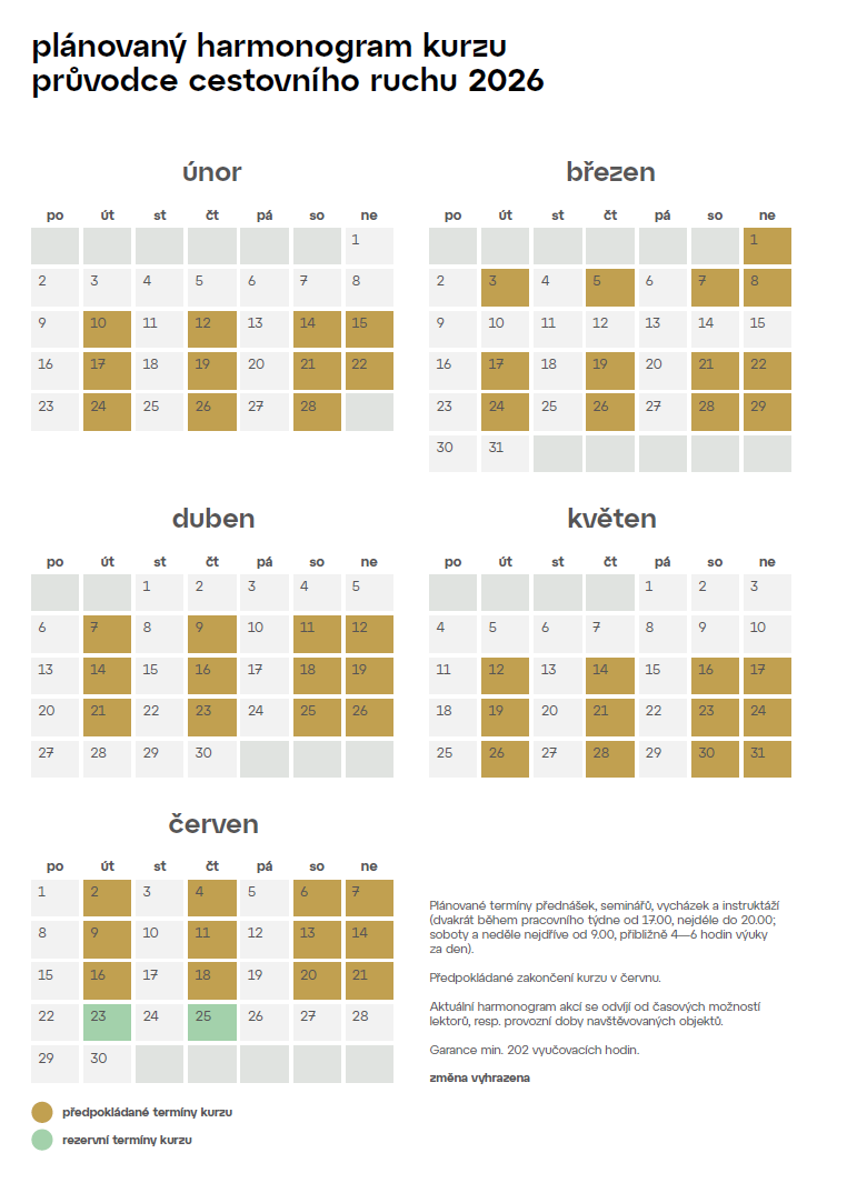 Kurz kreditovaný MŠMT zahrnující zkoušku průvodce cestovního ruchu.