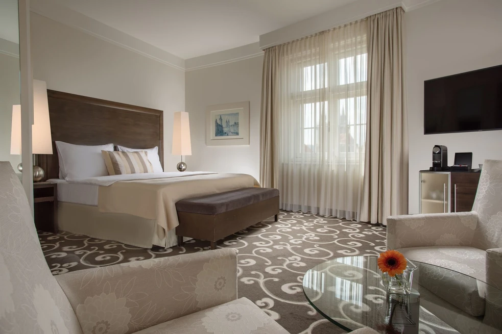 Vstupte do světa noblesy a prvorepublikové elegance v Grand Hotelu Bohemia na Starém Městě, jehož tradice sahá do roku 1927. Skutečným klenotem hotelu je novobarokní sál Boccaccio, dějiště vyhlášených kulturních večerů, jako jsou Večeře s Mozartem. Na náměstí Republiky, k Prašné bráně i Obecnímu domu se z hotelu dostanete příjemnou pětiminutovou procházkou. Gastronomie: Restaurace Steiner’s — menu inspirované první republikou Steiner’s bar Boccaccio bar Eventy: Salonek Bohemia — 20 osob Konferenční sál v novobarokním stylu Boccaccio — až 120 osob, má samostatný vchod