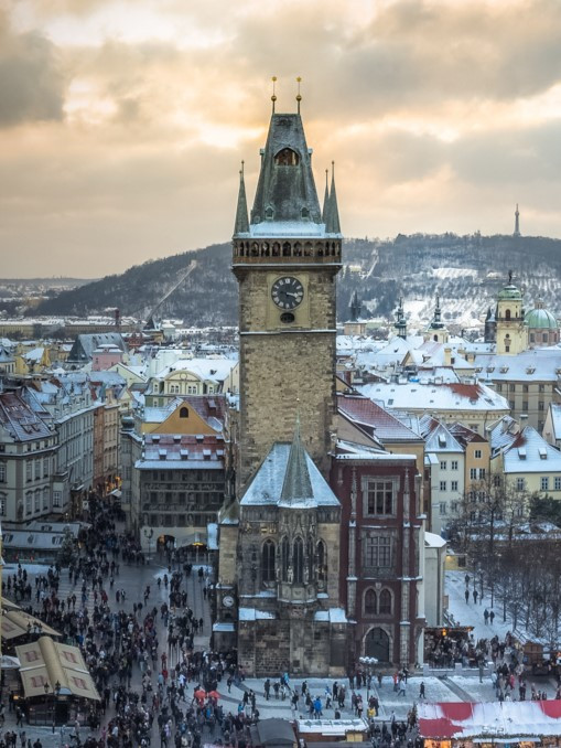 Vánoční trhy Vánoční akce Vánoční a novoroční koncerty Kam se vydat s dětmi Slavnostní menu Navštivte Staroměstskou radnici Vychutnejte si kouzelnou atmosféru největších vánočních trhů v České republice z výšky 70 metrů! Pohled na zářící Staré Město, jaký znají jen ptáci a andělé, vám nabídne věž Staroměstské radnice. V jejím přízemí najdete Turistické informační centrum, průvodcovské služby Guides&Tours i obchod s originálními dárky od lokálních tvůrců. Pohodlně s turistickou kartou Prohlédněte si svátečně nazdobené interiéry historických památek, muzeí a galerií, zúčastněte se komentovaných procházek městem vonícím vanilkou, skořicí a svařeným vínem. Proplujte centrem Starého Města vyhřívanou lodí, nastupte do některého z vyzdobených vozů historické tramvaje a přeneste se do časů rakousko-uherské monarchie anebo si zabruslete na kluzišti na Václavském náměstí. Užijte si vánoční atmosféru bez shánění jízdenek, vstupenek nebo poukazů na vycházky. Pořiďte si turistickou kartu Prague Visitor Pass, která vyřeší vše za vás. My o Vánocích nezavíráme! otevírací doba Historickou tramvají za pražskými výhledy I o letošních vánočních svátcích bude nejkrásnějšími místy Prahy projíždět slavnostně vyzdobená historická tramvaj. Stane se nejen poslem rozvážejícím kouzlo Vánoc do všech koutů města, ale je také ideální spojnicí mezi pražskými věžemi. Jízdenka vám pak poslouží jako poukázka na 20% slevu ze vstupného do některé z věží ve správě PCT. Milovníci betlémů mohou opakovaně vystupovat a nastupovat v blízkosti kostelů a obdivovat rozmanité jesličky. Betlém v chrámu Matky Boží před Týnem | Zdroj: www.krestanskevanoce.cz Betlémy a vánoční bohoslužby Do mnoha pražských kostelů se můžete vydat obdivovat řemeslnou dovednost našich předků a připomenout si místo narození Ježíše ve městě Betlémě. Betlémy bývají vystaveny obvykle od 24. prosince do začátku ledna, někde i déle. Účast na mši svaté nám přibližuje více duchovní a tajuplnou stránku Vánoc, zpívají se koledy nebo zní Česká mše vánoční Jakuba Jana Ryby. V některých kostelích se slouží půlnoční mše. Podrobné informace o vánočních programech kostelů najdete na stránkách Křesťanské Vánoce. Bruslení neodmyslitelně patří k vánoční Praze Už třetím rokem si můžete zabruslit na Václavském náměstí, a to od 1. prosince až do poloviny února denně od 9:00 do 22:00 h. K dispozici je půjčovna bruslí, občerstvení i nabídka originálních suvenýrů od místních tvůrců, které jistě poslouží jako inspirace na vánoční dárek. Darujte kouzelnou vstupenku na 9 pražských věží nebo vycházku s průvodcem voucher Zvyky a tradice České Vánoce v sobě spojují křesťanské i pohanské tradice: oslavy narození Ježíška i radost z vítězství světla nad temnotou po zimním slunovratu. Díky tomu se i v oblasti zvyků mísí prvky lidové zbožnosti s magickými praktikami, věštěním budoucnosti a snahou naklonit si tajemné síly přírody. Seznamte se alespoň s některými z nich. stránka České Vánoce stránka Původ Vánoc stránka Advent stránka Mikuláš stránka Lidové zvyky a pověry stránka Adventní postavy stránka Stromeček a Štědrý den stránka Betlémy stránka Koledy stránka Silvestr a Nový rok Živě ze staroměstského náměstí Staroměstské náměstí je tradičním centrem vánočních oslav v Praze. Podívejte se, co se na něm děje právě teď!