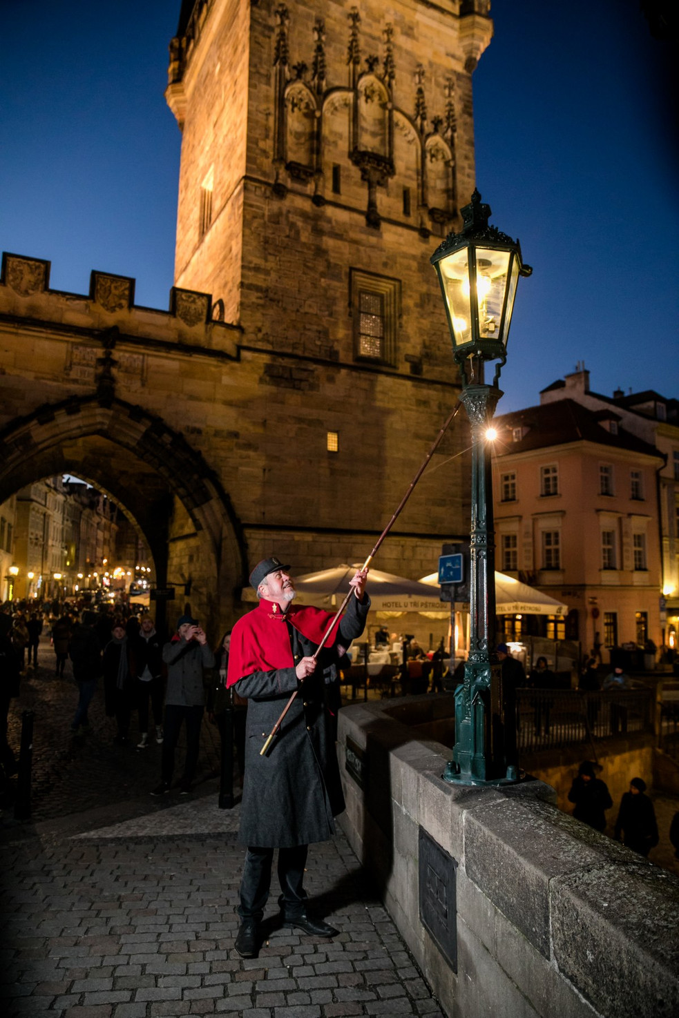 As in previous years, you will have a chance to meet the uniformed lamp-lighter on the Charles Bridge. At approximately 16:00 he will begin to light the historical gaslighting with a burning wick on a long rod near the Old Town Bridge Tower. Nowadays, the gas lights operate automatically, and Advent is the only time of the year when the gas lamps are lit up by a lamplighter. Street lighting in Prague dates back to 1847, which is the year when the first gas lamps were lit in this city. By 1940, nearly 9,000 gas lamps cast their bluish glow on the city. Gaslighting was used in Prague till 1985 when the eight branched cast-iron lamps on Hradčanské square and in Loretánská street were converted for electric light. However, 2002 saw the return of gaslight to the city’s most historic areas. In 2010, gas lamps were placed on the Charles Bridge, which is the only gas-lit bridge in the world. Nowadays, you can admire romantic gaslighting on the whole Royal Route, from Powder Gate Tower to Hradčanské square.