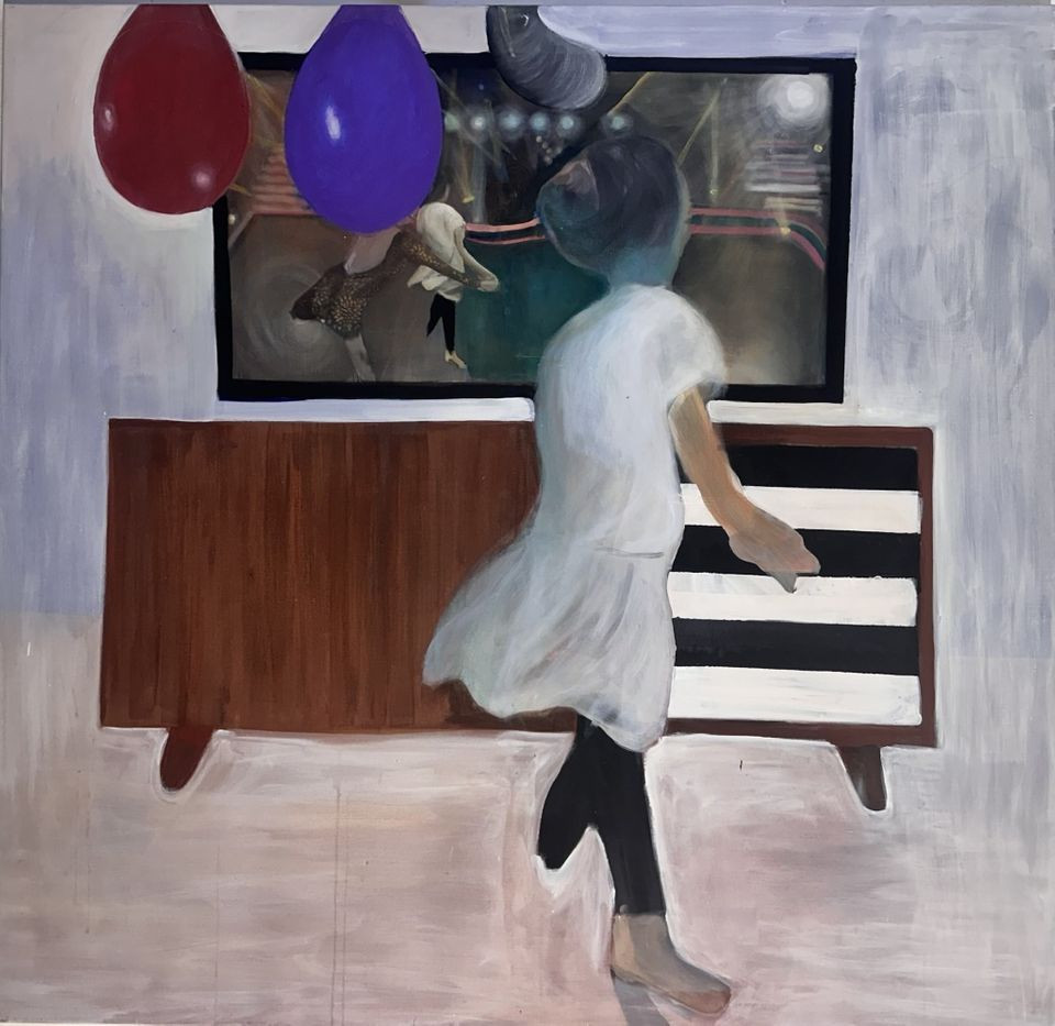 Šárka Růžičková Zadáková's paintings have had distinctive autobiographical features since her student days. Looking through her paintings is like leafing through a monumental, unabashedly personal diary. It is essentially a long-term personal concept, although the painter herself would probably not consider herself a conceptualist. Her paintings do not correspond to the prevailing (and misleading) idea of two crossed sticks or an incomprehensible intellectual output without additional explanation. Her long-term concept is naturally self-evident, with the pages of that imaginary diary corresponding to autonomous, purely painterly images. Careful preparation, a thoroughly thought-out process, notes in words and sketches. Narrative and the figure associated with it. Subjective perspective. Dreamlike haziness hand in hand with the typical expressive deformation of the figure. Realistic details of the environment. Picture within a picture, still life. Reason and emotion. Datum und Uhrzeit Mon—Sun 11:00—19:00