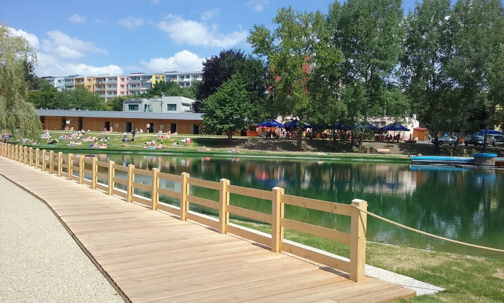 Übersicht Öffnungszeiten Eintrittsgebühr Das Naturareal für Sport- und Erholungszwecke. Für Besucher steht ein Biotop-Badesee mit einer Fläche von 5 570 m2 in Form eines unregelmäßigen Ovals mit einer Tiefe im Schwimmteil bis zu 3,25 m und im Nichtschwimmerbereich bis 1 m bereit. Weiters stehen den Besuchern Umkleidekabinen, Duschen, WCs, Clubräume und ein Imbissstand zur Verfügung. Öffnungszeiten Juni Mo—Do 10:00—19:00 Fr 10:00—20:00 Sa 9:00—20:00 So 9:00—19:00 Juli —August Mo—So 9:00—20:00 September Mo—Fr 10:00—18:00 Sa—So 9:00—18:00 Mehr zu Öffnungszeiten Eintrittsgebühr Grundlegende Ganztagesticket 180 Kč Reduzierte Eintrittsgebühr Ganztagesticket 120 Kč Familieneintritt Ganztagesticket 420 Kč Mehr zu Eintrittsgebühren Eintrittsgebühr Grundlegende Ganztagesticket 180 Kč Reduzierte Eintrittsgebühr Ganztagesticket 120 Kč Familieneintritt Ganztagesticket 420 Kč vollständige Ticket-Preisliste Öffnungszeiten Juni Mo—Do 10:00—19:00 Fr 10:00—20:00 Sa 9:00—20:00 So 9:00—19:00 Juli —August Mo—So 9:00—20:00 September Mo—Fr 10:00—18:00 Sa—So 9:00—18:00