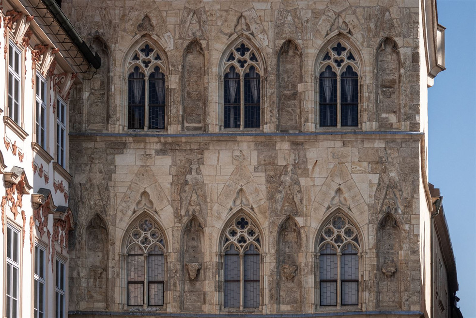 Übersicht Öffnungszeiten Eintrittsgebühr Programm Über den Ort Das Haus am Altstädter Ring ist eine der wertvollsten gotischen Sehenswürdigkeiten Prags. Eine Reihe von Jahren war dieses Unikat unter einer Barockfassade versteckt, die dann entfernt wurde, um das Gebäude in seine ursprüngliche gotische Gestalt zurück zu verwandeln. Seit dem Jahre 1988 dient das Haus als Ausstellungsraum für die Galerie der Hauptstadt Prag (tsch.: Galerie hlavního města Prahy). Im Objekt wurde ein Buchladen eröffnet, der auch Kataloge verkauft, und im hinteren Objektteil befindet sich ein Kaffeehaus. Öffnungszeiten Januar—Dezember Mo geschlossen Di—So 10:00—20:00 Mehr zu Öffnungszeiten Eintrittsgebühr Grundlegende 200 Kč Reduzierte Eintrittsgebühr 90 Kč Familieneintritt 450 Kč Mehr zu Eintrittsgebühren Quelle: Galerie hlavního města Prahy Zusammenhängende straßen und plätze Altstädter Ring Staré Město sakrale gebäude Kirche der Jungfrau Maria vor dem Teyn Staré Město galerien Nationalgalerie Prag — Palais Kinský Staré Město statuen und denkmäler Jan-Hus-Denkmal Staré Město türme und aussichtstürme Altstädter Rathaus mit der astronomischen Aposteluhr Staré Město statuen und denkmäler Mariensäule Staré Město Prague Visitor Centre — Altstädter Rathaus Staré Město Eintrittsgebühr Grundlegende 200 Kč Reduzierte Eintrittsgebühr 90 Kč Familieneintritt 450 Kč zeitgenössische kunst The Double 14. 11. 2025—5. 4. 2026 Galerie der Hauptstadt Prag — Haus zur steinernen Glocke Öffnungszeiten Januar—Dezember Mo geschlossen Di—So 10:00—20:00 Geschichte Haus Zur steinernen Glocke Eines der ältesten und merkwürdigsten Denkmäler Prags, dieses selten erhaltene Haus ist eine außergewöhnliche gotische Palastarchitektur vom Turmcharakter. Seine Frontseite gehörte zu den schönsten in Europa und belegt die Stattlichkeit der Stadt unter der Regierung Karls IV. Die Enthüllung der gotischen Hausfrontseite war eine überraschende Sensation, denn die Erhaltungsrate und die Kompliziertheit der Komposition übertrafen alle Erwartungen. Die reichhaltige Hausausschmückung stammt noch aus der Epoche vor Parler, sie kam irgendwann gegen das erste Viertel des 14. Jahrhunderts zustande. Der Name „Zur weißen Glocke“ oder „Zur steinernen Glocke“ taucht zum ersten Mal im Jahre 1417 auf, er entstand nach der steinernen Glocke, deren Replik sich an der Hausecke erhielt. Das Haus entstand in zwei Bauetappen (die zweite Hälfte des 13. Jahrhunderts und die erste Hälfte des 14. Jahrhunderts). Es wurde offenbar als Palast für die königliche Familie erbaut, vor allem für die Přemyslidin Elisabeth von Böhmen. Aus dieser Zeit gibt es zwar keine Dokumente, aber die bei dem Umbau entdeckten Plastikfragmente deuten darauf hin. Insgesamt wurden dreizehntausend Bruchstücke der Steinmetzenverzierung gefunden. Der Restaurator Jiří Blažej versuchte aus manchen Bruchstücken zumindest größere Statuenteile zusammenzubauen, die offensichtlich auf Konsolen in den Nischen auf der Fassade zwischen den Fenstern jeweils zu viert in jeder Etage standen. Durch die Zusammenstellung der Bruchstücke zeichneten sich vier Statuen deutlicher ab, zwei im Sitzen – Mann und Frau und zwei stehende Figuren, vielleicht Ritter. Es könnte sich um Johann von Luxemburg, die Přemyslidin Elisabeth von Böhmen und ihre zwei Söhne Karl und Johann Heinrich handeln. Zusätzlich wurden noch ein Kopf eines Löwen mit Glasaugen, ein Kopf eines wilden Mannes und weitere Plastikdekorativteile gefunden – alles hochwertige Arbeit, einst reichlich und bunt polychromiert. Die älteste Nachricht über das Haus ist aus dem Jahr 1363, als das Objekt bereits zum bürgerlichen Vermögen gehörte. Es gehörte dem Goldschmied Petzold von Eger und später dem Altstädter Schöffen Jan Ortlin, der Domšík (Aussprache: Domschik) genannt wurde (unter dem Namen Johann von der Glocke tritt er als Held des Romans von Svatopluk Čecha „Neuer epochaler Ausflug des Herrn Brouček, diesmal in das XV. Jahrhundert“ auf). Alte Prager Sagen von Adolf Wenig erwähnen, hier soll die Hl. Ludmilla, die Großmutter des Hl. Wenzel gewohnt haben, als sie nach Prag von Tetín kam. Ferner wurde erwähnt, im Untergrund soll eine Kapelle gewesen sein, wo der Priester für die Hl. Ludmilla in der Zeit der Christenverfolgung unter der Regierung ihrer Schwiegertochter, der Fürstin Drahomíra, heimlich einen Gottesdienst feierte. Die steinerne Glocke an der Hausecke soll an den Widerstand und die siegreiche Schlacht mit den Heiden erinnern, zu der ihre Stimme aufforderte. Möglicherweise soll die Glocke eher an das historische Ereignis des Jahres 1310 erinnert haben, wo der Kaplan der Přemyslidin Elisabeth von Böhmen Berenger mit der Glocke Johann von Luxemburg ein Zeichen bzw. Signal gab, dass er mit seinem Heer kommen und Elisabeth abholen und die Altstadt ohne Gewalt besetzen soll. Offenbar wohnte hier im Haus seiner Mutter der Königsohn Karl, wie die Königsaal-Chronik (Königsaal ist der deutsche Name des Prager Stadtteils Zbraslav) erwähnt. Den ursprünglich gotischen Charakter des Hauses änderten weitere Umbauten, insbesondere der im Barockstil aus dem Jahr 1685. Im Jahre 1899 gewann das Haus eine neue Pseudobarockfassade. Nach der Bauuntersuchung im Jahre 1961 wurde beschlossen, dem Haus sein gotisches Originalaussehen zurückzugeben. Die eigentlichen von den Architekten A. Charvátová und V. Pelzbauer projektierten Umbauarbeiten verliefen in den Jahren 1975 – 87. Die Arbeiten waren sehr anspruchsvoll und gingen sehr langsam, man musste aufpassen, dass nichts Wertvolles kaputt geht. Vor dem Haus am Altstädterring entstand eine ausgedehnte Steinmetzenhütte, die mit einer Hütte aus dem 14. Jahrhundert vergleichbar war, ohne zu übertreiben. Die über 6 Jahrhunderte alten Bruchstücke der Steinmetzenverzierung wurden in den Kellerräumen aufbewahrt. Beim Umbau überwog die feinste Steinmetzenarbeit, wo Fra