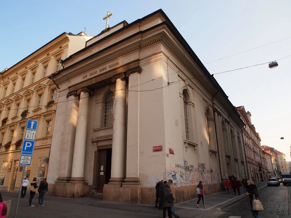 Übersicht Öffnungszeiten Über den Ort Die Empirekirche mit ihren zwei Säulen und Pilastern mit ionischen Kapitellen an der Vorderfront der Kirche wurde in den Jahren 1816—1824 vom Piaristenorden erbaut. Nach Beendigung ihrer Tätigkeit wurde sie den Salesianern Don Boscos anvertraut. In der Kirche befindet sich eine Fotoaufnahme des Turiner Grabtuches in natürlicher Größe, in das Jesus Christus nach der Kreuzigung eingewickelt worden ist. Gottesdienste werden hier auch in italienischer Sprache abgehalten. Mehr zum Ort Öffnungszeiten Januar—Dezember Mo—Fr 9:00—12:00 14:00—17:00 Sa geschlossen So 9:00—12:30 18:30—20:00 Mehr zu Öffnungszeiten Öffnungszeiten Januar—Dezember Mo—Fr 9:00—12:00 14:00—17:00 Sa geschlossen So 9:00—12:30 18:30—20:00 Regelmäßige römisch-katholische Gottesdienste Montag—Freitag: 10:00 Uhr und 15:30 Uhr Sonntag: 10:30 Uhr, 11:30 Uhr (auf Italienisch) und 19:00 Uhr Geschichte Die Geschichte dieser Kirche steht im Zusammenhang mit dem Piaristenorden, dessen Mitglieder im Jahr 1752 nach Prag kam und in der Altstädter Celetná-Straße eine Schule gründeten. Diese reichte schon bald nicht mehr für die wachsende Zahl von Schülern, sodass die Ordensbrüder ein Grundstück an der Straßenecke Na Příkopě erwarben, dessen Gebäude in den Preußenkriegen abgebrannt war. Zunächst wurde hier ein Gymnasium gebaut, anschließend folgte in den Jahren 1819 – 1821 eine Kirche, die jedoch erst am 9. 5. 1824 geweiht wurde. Der klassizistische rechteckig-einschiffige Empire-Neubau wurde vom Architekten Jiří Fischer in Zusammenarbeit mit dem Architekten H. Hausknecht entworfen, die Steinmetzarbeiten wurden von L. Kranner ausgeführt. Die zur Straße Na Příkopě weisende Hauptfassade ist mit ionischen Pilastern und mächtigen Säulen verziert, über dem Hauptgesims erhebt sich ein großes vergoldetes Kreuz. Der rein klassizistisch gehaltene nahezu schmucklose Innenraum wirkt hell und schlicht. Auch hier finden sich ionische Pilaster und Säulen. In der Kirche ist ein Foto des Turiner Grabtuches (des Leichentuches des gekreuzigten Jesus Chistus) ausgestellt. Zum Schülerkreis des Piaristen-Gymnasium zählten so bekannte Persönlichkeiten wie Josef Jungmann oder Karel Hynek Mácha. Das Kirchengebäude ist im Besitz der römisch-katholischen Kirche. Gottesdienste finden hier auch in italienischer Sprache statt.