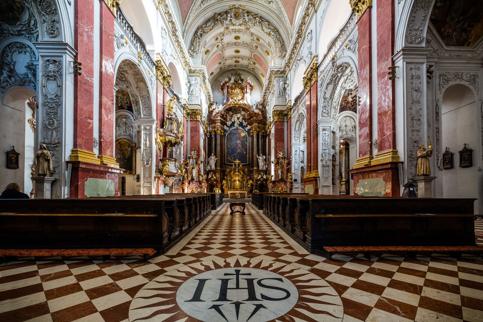 Übersicht Öffnungszeiten Über den Ort Die frühbarocke Kirche war ursprünglich Bestandteil des ehemaligen Jesuitenklosters (angeblich der drittgrößte Jesuitenkomplex in Europa), der heute als Fakultätskrankenhaus dient. Die Dominante des Karlsplatzes, erbaute in den Jahren 1665—1671 vom Architekten Carlo Lurago. Die Inneneinrichtung wirkt auf Besucher auf Grund ihres reichhaltigen, barocken Dekors und der Lichstreuung beeindruckend. Die Einrichtung stammt vorwiegend aus der Zeit rund um das Jahr 1770. Mehr zum Ort Öffnungszeiten Januar—Dezember Mo—So 7:00—12:00 15:30—18:30 Mehr zu Öffnungszeiten Öffnungszeiten Januar—Dezember Mo—So 7:00—12:00 15:30—18:30 Regelmäßige römisch-katholische Gottesdienste Mo—Fr: 6:15, 7:30, 17:30 Sa: 7:30, 17:30 So: 7:00, 9:00, 11:00, 17:30 Geschichte Die frühbarocke Kirche des hl. Ignatius von Loyola steht an der Ecke des Karlsplatzes und der Ječná-Straße in Prag. Ursprünglich war die Kirche Teil eines ausgedehnten Komplexes des ehemaligen Jesuitenkollegs, das den südöstlichen Teil des Platzes einnahm. Heute befindet sich an dieser Stelle ein Universitätskrankenhaus. Der Kern der einschiffigen Kirche mit Seitenkapellen wurde in den Jahren 1665—1671 vom Architekten Carlo Lurago erbaut. Zwischen 1671 und 1678 setzte Martin Reiner den Bau fort. Die Fassade der Kirche wird über dem dreieckigen Giebel von einer Statue des hl. Ignatius geziert, der von einem Heiligenschein, der sogenannten Mandorla, umgeben ist. Der Portikus mit Balustrade sowie der Turm stammen aus den Jahren 1697—1699 und sind Werke von Pavel Ignác Bayer. Die barocken Statuen der Jesuiten auf der Balustrade wurden in der Werkstatt von Matouš Václav Jäckel geschaffen. Im Inneren der Kirche fällt der monumentale Triumphbogen zwischen dem Kirchenschiff und dem Chorraum besonders auf. Die reichhaltige Stuckdekoration des Innenraums wird vermutlich Tommaso Soldati zugeschrieben. Der barocke Hauptaltar wird durch das Gemälde „Der hl. Ignatius tritt in die himmlische Herrlichkeit ein“ von J. J. Heintsche geschmückt. Die Kirche gehörte bis zur Auflösung des Jesuitenordens im Jahr 1773 zum Kolleg und wurde dem 1886 wiederhergestellten Orden der Jesuiten bis 1950 erneut zugeordnet. Nach dem Sturz des Kommunismus wurde die Kirche im Jahr 1990 wieder an den Orden der Gesellschaft Jesu zurückgegeben. Ignatius von Loyola (1491—1556), 1622 heiliggesprochen, ist der Patron der Jesuiten, der Soldaten, Kinder und schwangeren Frauen. Er war der Gründer des Jesuitenordens und Autor des spirituellen Werkes „Geistliche Übungen“.