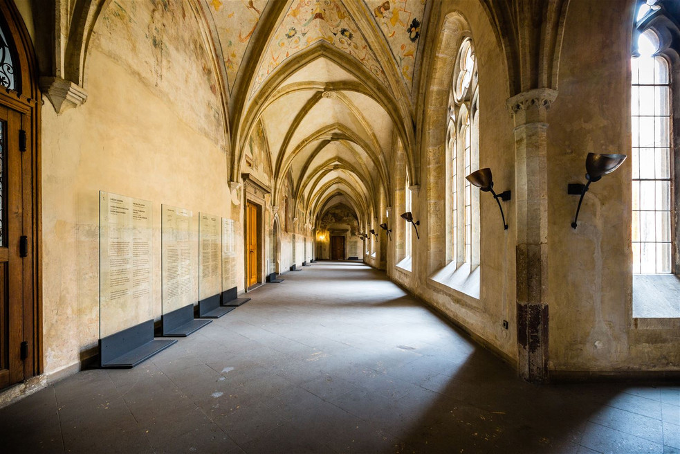 Übersicht Öffnungszeiten Eintrittsgebühr Programm Über den Ort Das Agneskloster zählt zu den bedeutendsten gotischen Bauten in Prag. Es wurde in den 30er Jahren des 13. Jahrhunderts von der Přemysliden-Prinzessin, der Heiligen Agnes von Böhmen, gemeinsam mit ihrem Bruder, König Wenzel I., gegründet. Der Besucherrundgang beschäftigt sich mit der Geschichte der einzelnen Teile des einzigartigen, erhaltenen Grundrisses des mittelalterlichen Klosters. Alle bedeutenden Räumlichkeiten sind zugänglich, inklusive des Oratoriums der Heiligen Agnes, des Heiligtums des Salvators und der Kirche des Heiligen Franz mit dem Platz, wo die sterblichen Überreste von König Wenzel I. aufbewahrt werden. Öffnungszeiten Januar—Dezember Mo geschlossen Di—So 10:00—18:00 Mehr zu Öffnungszeiten Eintrittsgebühr Grundlegende 250 Kč Reduzierte Eintrittsgebühr 140 Kč Mehr zu Eintrittsgebühren Eintrittsgebühr Grundlegende 250 Kč Reduzierte Eintrittsgebühr 140 Kč Tickets Besichtigungen Das Kloster der Heiligen Agnes von Böhmen bietet nicht nur einen Rundgang durch die historischen Räume und die Galerie, sondern auch die Möglichkeit, sich in den wiederhergerichteten Klostergärten zu entspannen. Im Rahmen der Baumaßnahmen wurde die Barrierefreiheit des Gebäudes verbessert. Der Besuch der Klostergärten ist kostenlos. Besucherrundgang Zum neuen Besucherrundgang gehört die Ausstellung des Lapidariums und eine Führung durch die historische Architektur des ehemaligen Doppelklosters — das Frauenkloster der Klarissen und das Männerkloster der Minderbrüder. Die Besichtigung, die der Persönlichkeit der Heiligen Agnes von Böhmen und der Bedeutung des Klosters gewidmet ist, kommt keiner typischen Ausstellung gleich. Die Absicht der Autoren war es, das Hauptexponat – die Architektur und die Atmosphäre des Klosters selbst – so weit wie möglich wirken zu lassen. Die Lapidarium-Ausstellung im Erdgeschoss erinnert an die Baugeschichte des Klosters und präsentiert die wertvollsten Artefakte, die bei den jahrzehntelangen archäologischen Erkundungen des Gebäudes gefunden wurden. Programme für Familien mit Kindern Thematisch zusammengestellte Stationen, die das Thema „Das Kloster mit allen Sinnen“ verbindet Kinderatelier im Westflügel des Ambits der Klarissen Kulturelle Veranstaltungen Ein Teil vom Erdgeschoss des Klosters wird für Kurzzeitausstellungen sowie gesellschaftliche und kulturelle Veranstaltungen genutzt. Im ersten Stock des St.-Agnes-Klosters finden die Besucher auch weiterhin eine Auswahl der besten mittelalterlichen Kunstwerke aus den Sammlungen der Nationalgalerie Prag. klassische musik Schubert — Winterreise 19. 3. 2026, 19:30 Nationalgalerie Prag — Kloster der Hl. Agnes von Böhmen klassische musik Prague Spring 2026 — Smetana trio 16. 5. 2026, 20:00 Nationalgalerie Prag — Kloster der Hl. Agnes von Böhmen klassische musik Prague Spring 2026 — Bennewitz Quartet 23. 5. 2026, 17:00 Nationalgalerie Prag — Kloster der Hl. Agnes von Böhmen festivals Prague Spring 2025 — SpringTEEN 30. 5. 2026, 14:00 Nationalgalerie Prag — Kloster der Hl. Agnes von Böhmen veranstaltungen Medieval Art in Bohemia and Central Europe 1200–1550 Nationalgalerie Prag — Kloster der Hl. Agnes von Böhmen Öffnungszeiten Januar—Dezember Mo geschlossen Di—So 10:00—18:00 Geschichte Das Hl.-Agnes-Kloster “Na Františku“ wird fürs erste gotische Bauwerk nicht nur in Prag, sondern in ganz Böhmen gehalten. Es wurde vom König Václav I. (Wenzel I.) in den Jahren 1233—1234 auf die Anregung seiner Schwester Agnes gegründet, und zwar für den Orden der Santa Clara, den Agnes nach Böhmen herbeiführte und dessen erste Mutter Oberin war sie dann. Der Vorgänger des Klosters war ein Spital. Der Klarissen-Orden entstand ursprünglich als ein Ableger des Ordens des hl. Franziskus von Assisi, der Kloster war auch als Prager Assisi genannt. Agnes war eine außerordentliche geistliche Persönlichkeit des 13. Jahrhundert. Sie hat nebst dem Klarissen-Kloster, wo sie zur Äbtissin wurde, auch den einzigen böhmischen Kirchenorden gegründet – den Hospitalorden der Kreuzherren mit Rotem Stern. Agnes von Böhmen wurde im J. 1989 heiliggesprochen. Das Agnes-Kloster ist ein Komplex aus zwei Gebäuden — dem Kloster der Klarissen und dem Franziskanerkloster, das in der Nachbarschaft gegründet wurde. Das einstöckige, auffallend lange Gebäude des Klosters der Klarissen wurde als Sichtmauerwerk ausgebaut, sorgfältig in romanischer Bindung ausgefugt. Es ist die älteste erhaltene Backsteinarchitektur in Prag. Senkrecht zur Kloster wurde die Doppelschiffkirche des hl. Franziskus errichtet, die frühgotischen Formen hat. Von 1245 bis 1260 wurde der klösterliche Kreuzgang und die Klosterküche gebaut. Dem Langhaus der Franziskuskirche wurde auf der Ostseite das Presbyterium angeschlossen und die Kirche wurde dem männlichen Franziskanerkloster zugeordnet. Das Presbyterium ist bis aufs Fenstermaßwerk erhalten geblieben. In der südlichen Wand des Seitenschiffs der Kirche ist das älteste gotische Fenster in Prag und Mitteleuropa. Das Gewölbe der Kirche stürzte in der Vergangenheit ein, der Raum ist mit einem neuen modernen Dach mit geklebter Holzkonstruktion abgedeckt. Der Dachkamm mit seiner Höhe von 37 m überragt jetzt die anderen Dächer in der Umgebung. Der gesamte westliche Giebel und ein Teil des südlichen Giebels der Kirche mussten mit künstlichen Sandsteinplatten zugemauert werden, die aus einer Mischung von Quarzsand mit Harz gegossen werden, die zuerst mit erdigem Ocker zugefärbt und dann beheizt wurde, so dass die Masse wieder in Stein verhärtete. Das eingestürzte Kirchenschiff wurde als Josef-Mánes-Saal umgebaut, der für Musikveranstaltungen benutzt wird. Für die Klarissen wurde vor dem Kloster eine Kirche unbekannter Weihe ausgebaut, die zur Kapelle der hl. Maria Magdalena auf der Nordseite verbunden war. Zur Kirche der unbekannten Weihe wurde später eine h