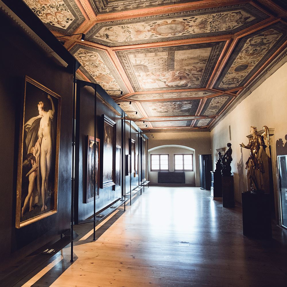 Übersicht Öffnungszeiten Eintrittsgebühr Programm Über den Ort Das Schwarzenberg-Palais ist ein nicht wegzudenkender Bestandteil des gesamten Hradschin-Panoramas. Es handelt sich hierbei um ein ausdrucksvolles Gebäude der frühen Renaissance, dessen Fassade mit Hilfe von reichem Sgraffito-Dekor gelöst ist. Die neue Exposition im Palais Schwarzenberg präsentiert eine Auswahl der bedeutendsten Meisterwerke aus der Sammlung alter Kunst. Mehr zum Ort Öffnungszeiten Januar—Dezember Mo geschlossen Di—So 10:00—18:00 Mehr zu Öffnungszeiten Eintrittsgebühr Grundlegende 250 Kč Reduzierte Eintrittsgebühr 140 Kč Mehr zu Eintrittsgebühren Eintrittsgebühr Grundlegende 250 Kč Reduzierte Eintrittsgebühr 140 Kč veranstaltungen Old Masters Nationalgalerie Prag — Schwarzenberg–Palais Öffnungszeiten Januar—Dezember Mo geschlossen Di—So 10:00—18:00 FÜR MEHR INFORMATIONEN Geschichte Palais Schwarzenberg (auch Lobkowitz genannt) – Nationalgalerie in Prag Westlich von der Rampe der Prager Burg liegt eines der meist erhaltenen Renaissancepalais, das neben dem Königlichen Lustschloss auch der imposanteste Renaissancebau Prags ist. Das Palais ist ein Beispiel der tschechischen Renaissance, die Verbindung der walachischen Muster und der böhmischen Tradition. Nach 1500 lagen hier drei größere Häuser, von denen zwei nach einem großen Brand im Jahre 1541 Johann der jüngere von Lobkowitz, später der oberste Prager Burggraf, gewann. Das Palais baute für ihn seit 1545 Agostino Galli, auch Walache genannt. Der Bau wurde einschließlich Sgraffiti im Jahre 1567 fertig gestellt. Das dritte Haus gewann Lobkowitz erst später, deshalb auch der Bau des westlichen Flügels wurde später fertig gestellt. Das Palais hat einen dem T-Buchstaben ähnlichen Grundriss und rechts ein etwas niedrigeres Nebengebäude, das den Ehrenhof am Hradschinplatz abgrenzt. Dieser ist vom Hradschinplatz durch eine Wand mit einem Gittertor getrennt. Die Fassaden der Gebäude sowie der Mauer sind mit Sgraffiti der norditalienischen und venedischen Art mit der Datierung 1567 reichlich verziert. Für den Bau sind hohe Giebel, ebenfalls mit Sgraffiti bedeckt, und ein ausdrucksvolles Lünettengesims zwischen dem Dach und der Wand bezeichnend. Die Sgraffitoornamente sowie das Quadrieren sind schwarzweiß. Mit seinem Charakter erinnert das Gebäude eher an ein Schloss als an ein Stadt-Palais. Nachdem der nächste Eigentümer Georg von Lobkowitz bei Rudolph II. in Ungnade gefallen war, gefangen gehalten und sein Vermögen konfisziert worden war, ging das Objekt im Jahre 1600 ins Eigentum von Peter Wok von Rosenberg über. Nach ihm besaßen es die Schwambergs, dann Eggenbergs. Durch eine Eheschließung ging es 1719 ins Vermögen der Schwarzenbergs über, namentlich handelt es sich um Adam Franz Karl, Fürst zu Schwarzenberg, Herzog zu Krumau. In den Jahren 1723 – 24 reparierte die Wohnräume für die Schwarzenberg-Familie Anton Hafenecker und baute sie nach dem Projekt von Antonio Erhard Martinelli auch neu. Im Jahre 1870 stürzte der westliche Hauptgiebel in den Platz und anschließend in den Jahren 1871 – 92 führte der Architekt Jan Schulz Fassaden- und Giebelreparaturen. Bei der Sgraffitoergänzung wurden nicht die Originalmuster, sondern Entwürfe von Jan Koula, Josef Schulz und dem Baurat Sedláček berücksichtigt. Gleichzeitig wurde auch die Einfriedungsmauer des Ehrenhofs mit Attika neu verziert. Sgraffiti wurden im Jahre 1929 und erneut in den Jahren 1955 – 57 bereits nach den gefundenen Originalmustern restauriert. Renovierte Sgraffiti hatten ein Gesamtausmaß von ca. 7000 m2, das Restauratorenteam führten damals J. Kabeš und A. Tintěra. Eine kleine Merkwürdigkeit des Palais ist eine Renaissancesonnenuhr, angebracht auf einem der Schornsteine und sichtbar vom Haus Zu den zwei Sonnen in der Nerudova-Straße. Auf den Uhrseiten gibt es ein Sgraffitosymbol des Tages – der Hahn und der Nacht – die Eule. Die Aufschrift unter der Uhr verkündet Hora ruit (die Stunde stürmt an). Im Innenraum erhielten sich in vier Sälen der zweiten Etage gemalte Tafeldecken, die einen wertvollen Beleg der Renaissancefiguralmalerei aus der Zeit um 1580 darstellen. Die Gemälde haben folgende Themen: Faetón, Jupiter und Junona, Paris-Gericht, Entführung der Sabinerinnen, Eroberung von Troja, Aeneas trägt Anchises aus dem brennenden Troja, Chronos entführt Proserpina aus der Unterwelt. Weil der Kaiserhof in Wien ansässig war, dienten die Prager Palais ihrem Wohnzweck immer weniger, die Eigentümer zogen in den Hofstandort um. Zu Beginn des 20. Jahrhunderts blieb im Schwarzenberg-Palais nur noch der Pferdestall übrig, seit 1908 vermieteten die Schwarzenbergs das Palais unentgeltlich an das Technische Nationalmuseum, das dort seine Sammlungen ausstellte. Während des Maiaufstands am Ende des Zweiten Weltkriegs erlitt das Palais erhebliche Schäden, er diente damals als befestigte Zentrale des Generalstabs. Es musste repariert werden und nach der Adaptation eröffnete hier das Historische Militärmuseum am 1. Juni 1947 seine erste Exposition. Das im Jahre 1919 gestiftete Historische Militärmuseum wurde ursprünglich im Černín-Palais und später im Invalidenheim untergebracht. Während der Besatzung wurde es durch Nazis eingenommen und die Sammlungen wurden nach Deutschland gefahren. Nach dem Krieg konnten die meisten Exponate zum Glück gefunden und ins Museum zurückgebracht werden. Im Jahre 2000 wurde die Exposition des Historischen Militärmuseums wegen Umbau geschlossen, der im Jahre 2007 zu Ende ging. Nun befindet sich das Palais im Eigentum der Nationalgalerie, die hier im März 2008 ihre neue Exposition Namens Barock in Böhmen eröffnete.