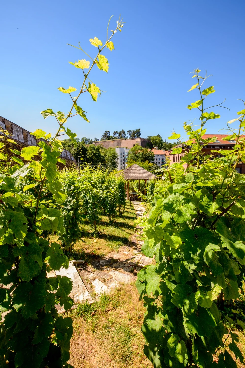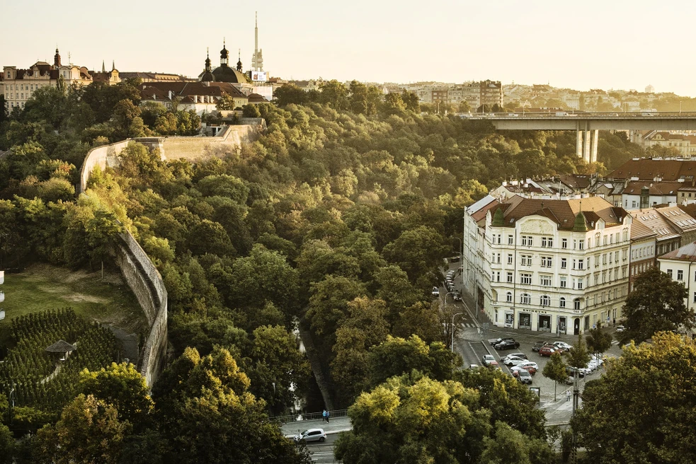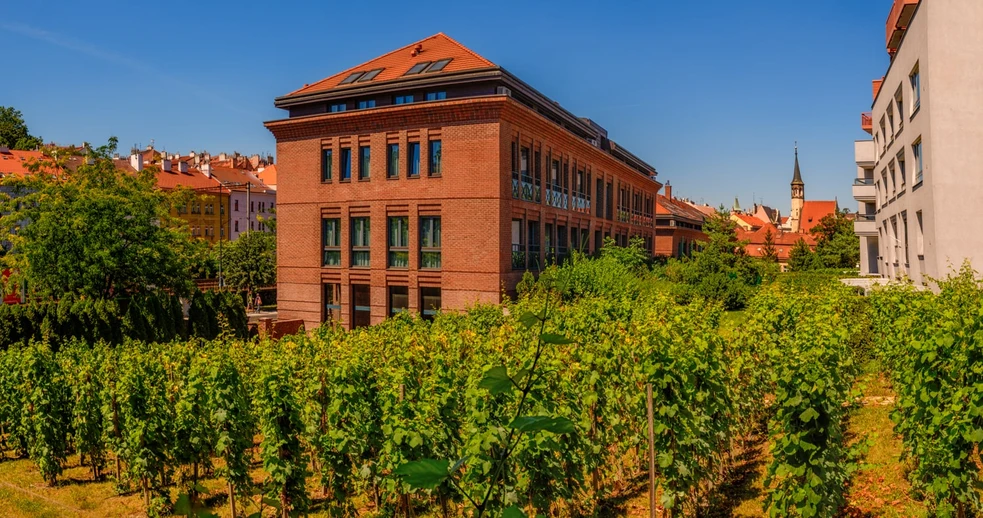 Einer der jüngsten Weinberge Prags befindet sich an einem einzigartigen Ort, an dem nicht nur die vier Stadtteile Nové Město, Vyšehrad, Vinohrady und Nusle aneinandergrenzen, sondern auch Geschichte und Gegenwart aufeinandertreffen. Im Garten des modernen Wohnkomplexes, der direkt an die mittelalterliche Stadtmauer der Neustadt angrenzt, ließ der Eigentümer des Geländes im Jahr 2009 einen privaten Weinberg anlegen. Mit seinem romantischen Gartenhaus erinnert er an die Tradition des Weinbaus, auf den nur noch wenige Ortsnamen hinweisen. Neben Vinohrady (Weinberge) oder Viničná-Straße (Weinstraße) beispielsweise auch Vinný potok (Weinbach). So hieß der Bach Botič, der sich zwischen Vyšehrad und den Weinbergen an den südlichen Hängen von Větrov schlängelte, bevor die Weinberge der Stadt Platz machten. Der Weinberg ist mit den traditionellen Sorten Pinot Noir und Rheinriesling, aber auch mit der neu gezüchteten Sorte Phoenix bepflanzt. Etwa 850 Reben werden nach dem traditionellen System „am Kopf“ bewirtschaftet.