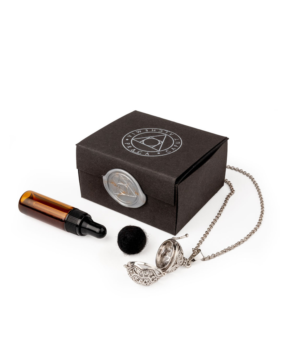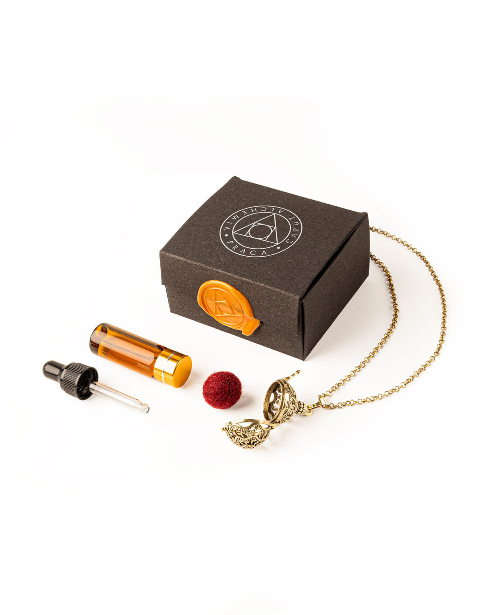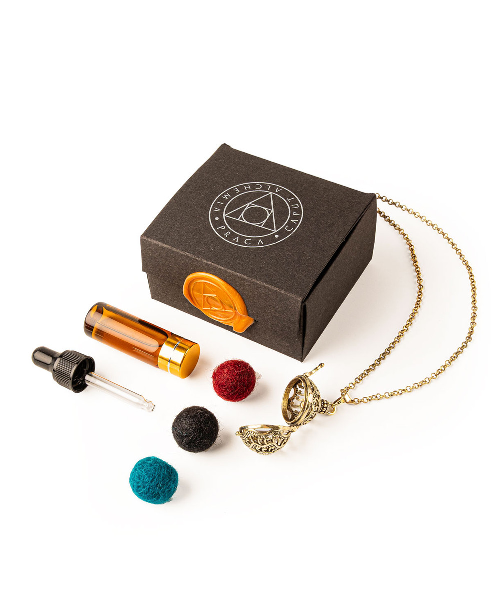 Unser Pomander ist ein elegantes Accessoire für jeden Tag, das Ihre Sinne beruhigt! Diese Halskette mit Diffuser, inspiriert von einem Original der Renaissance, ist eine Würdigung der alchemistischen Tradition am Prager Hof von Kaiser Rudolf II. Die Herstellung erfolgt nach dem Verfahren der Spagyrik — einer alchemistischen Methode der Renaissance zur Umwandlung von Pflanzenmaterial in hochwirksame Tinkturen und Elixiere. Für die Herstellung werden ausschließlich natürliche ätherische Öle in Bioqualität, handverlesene Harze, Blütenwachse und andere natürliche Rohstoffe verwendet. Pomander verströmt einen subtilen aromatherapeutischen Duft, der Stress abbaut und zu tiefer Entspannung führt. Jetzt können auch Sie duftende Kompositionen genießen, die in kleinen Chargen hergestellt werden. Riechen Sie doch mal!