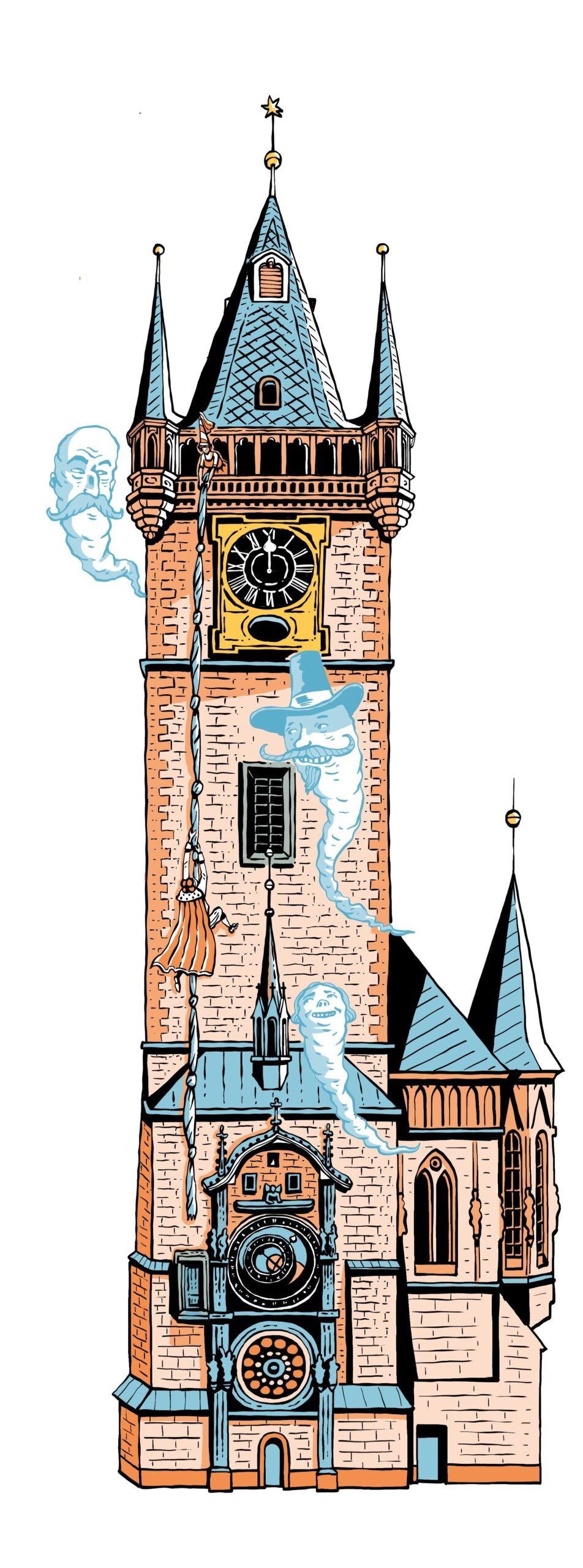 The Old Town councillors were rightfully proud of their astronomical clock. Then rumours began to spread that Hanuš was receiving offers from elsewhere and that the master sat up late into the night in his room, calculating and drawing. What else could it be but an even better and more perfect astronomical clock designed for some foreign city? What would happen to the glory of the Old Town clock then? So the Old Town councillors began to rack their brains over how to ensure that Master Hanuš would never make another astronomical clock. They debated the issue for a considerable time, but money, a commitment or an oath did not seem secure enough. Finally, one of the councillors, a cruel man with a hard heart, came up with an idea that astonished them all. His plan was terrifying, but gradually, one by one, the councillors recognised that this was the only way to ensure that Prague’s Astronomical Clock would remain unique forever. Late one evening, Master Hanuš sat over his plans and sketches. The assistant and the housekeeper had long since left, and the master was alone in the house. It started raining outside, but it was cosy in the parlour. The flickering light of the candles cast strange patterns on the walls, a fire burned in the fireplace, and beech logs crackled occasionally in the silence. Hanuš bent over the parchments with columns of tiny numbers, occasionally raising his grey head, thinking for a moment, and then adding another note or crossing out the previous ones with a frown. He was just thinking about how to improve the Old Town Astronomical Clock, what new and unique features to add. Suddenly, there was a loud banging on the front door and a voice called out: “Open up, we’re in a hurry!” The master hurried over and pulled the heavy door away. In the rectangle of darkness, he saw the massive figures of three hooded men. They threw themselves at him and dragged him into the room. There they gagged him and two held him down while the third heated his dagger red-hot in the flames of the fireplace. Master Hanuš had just enough time to figure out what they were planning to do, just enough time to let out a muffled cry, and then he fainted from terror. He awoke in unspeakable pain. He realised that he was lying in his bed, he heard the voice of his assistant and the lamentations of the housekeeper, but all he saw was darkness. He was blinded. Master Hanuš was ill for a long time, delirious with fever, then falling into a deep sleep for days on end. His eyesight did not return. When he felt a little better, he would sit in the living room and try to figure out who could have done such a terrible thing and why. Once, when the assistant returned from the town hall, where he had been cleaning and maintaining the astronomical clock, he recounted what he had overheard from a conversation between two councillors: they were praising themselves for having done the right thing, saying that it was now more than certain that Master Hanuš would not build another astronomical clock. The master thus realised who was responsible for his blindness. He no longer felt pain, only profound bitterness and regret at the retribution he had received for his unique work. Bitterness was followed by anger and a desire for revenge, from which a plan for retribution sprouted. He confided to his assistant that he would like to go to the town hall to at least feel his beloved machine under his fingers, to delight in touching its parts, its clatter and ticking. The assistant complied. When they stood in front of the machine, the master gently touched its parts with his fingers, listened to the familiar sounds of its operation, and stroked the metal and wood with his palms. His face lit up, and tears welled up in his dull eyes. In his mind, he saw a complex mechanism in front of him, with each component fitting together with the next, and he could even make out the smallest details. Suddenly, he reached into the machine with expert hands, pulled a lever with all his strength, it snapped, and the machine began to creak and rattle until its sounds dissolved into an ominous silence. In that silence, the master’s heart burst and he fell to the ground. The astronomical clock was completely broken. It is said that it remained this way for many years until someone was found who could repair it. And the horrifying silence of the clock throughout this time reminded the councillors of their terrible deed. Based on the book 77 pražských legend by Alena Ježková (77 Prague Legends).