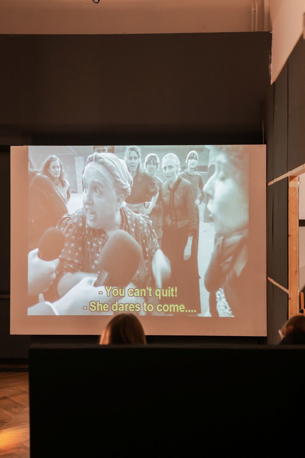 The exhibition explores the possibilities of collective action and shared imagination through the metaphor of Community Television—an alternative to both centralized and hyper-individualized forms of media communication. In dialogue with Peter Watkins’s film La Commune (Paris, 1871), it opens questions of media power, dialogue, and political agency in the past and present. The gallery space is transformed into a site of collective viewing, movement, and discussion, closer to a television studio or a clubhouse than a cinema. The second part of the exhibition, Anchan/Anna Daučíková’s Metabolism of Mirroring, updates Watkins’s approach through contemporary protests, emphasizing the necessity of collective learning, response, and action. The exhibition invites audiences to active participation and to rethinking the possibilities of shared political communication today. date and time st—ne 12:00—18:00
