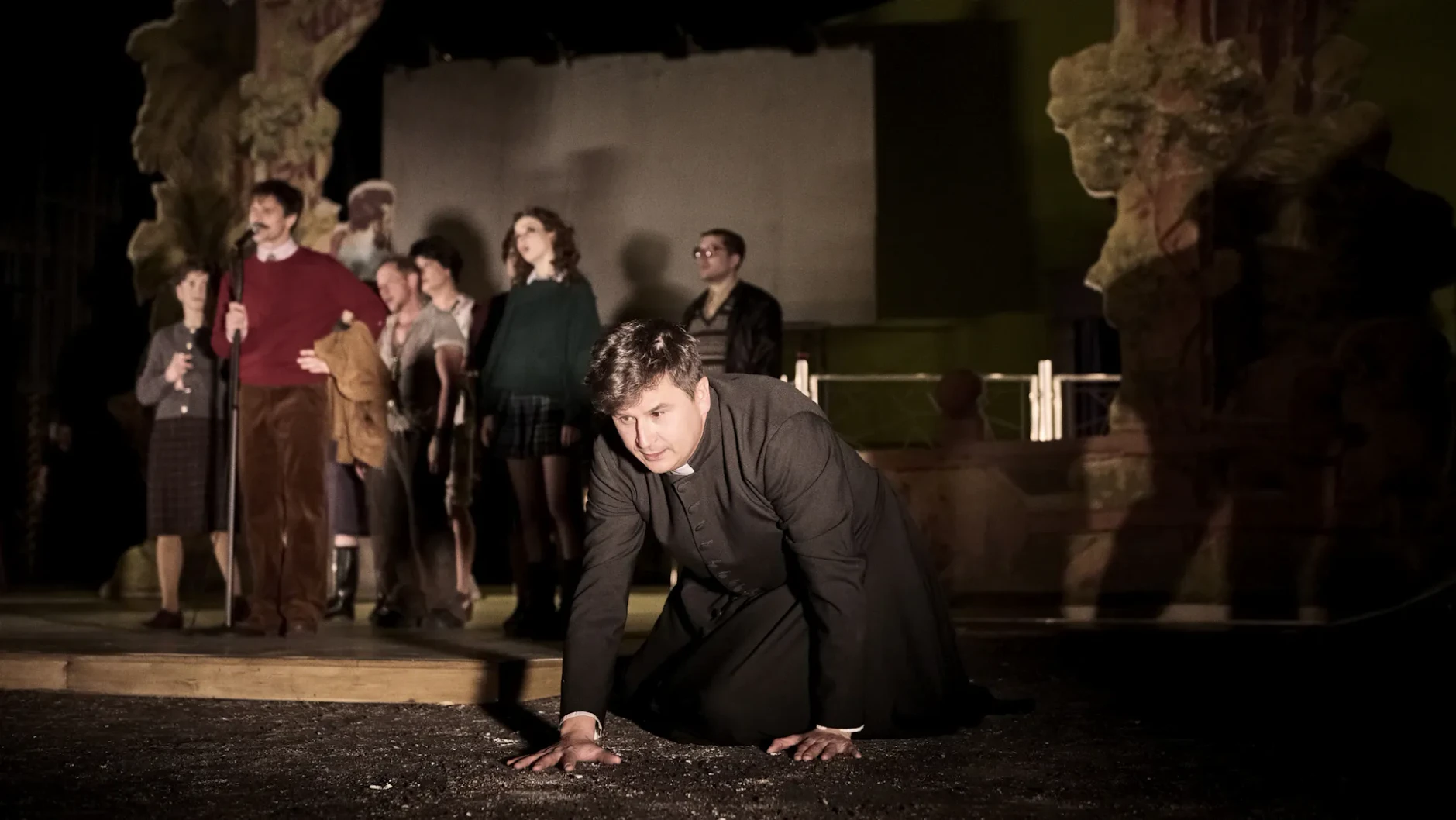 An evangel on the conflict of faith and reason. An awkward and somewhat unhappy churchwarden quits his job at a big city church to find a new life in a remote mountain village. By a tragicomic coincidence, he is considered the new parish priest whom the forlorn community desperately searches for and needs. Having tried in vain to explain and escape the part in a ‘miracle’, the churchwarden eventually accepts the role of the accidental saviour. His unorthodox ways and understanding for all human sins and weaknesses capture the hearts of the peculiar villagers. However, he clashes with the local teacher, who used to be the local celebrity and authority and who promotes ‘non-spiritual’ education. The faith of a man who has humbly assumed the desired task thus stands in juxtaposition to the self-confident ‘common sense’. But what if not everything is as it seems? The original novel by Josef Škvorecký is based on a contemporary piece of news about a purported priest who served in Czech mountains for almost a year without being uncovered. Director Evald Shorm made it into a film, a masterpiece of the Czech New Wave, starring Vlastimil Brodský and Jan Libíček. Nonetheless, the story of the village where the old traditions have been obliterated is not necessarily linked to the 1950s, in which the novel is set, or the late 1960s, when Evald Schorm made his film. The metaphor branching out into several directions is actually a cynical parable set at an indefinite time and place, yet conveying a very definite message. It touches on topics that remain highly relevant to date: the conflicts between urban and rural areas, the aggressive atomization of social bubbles, and the difference between ‘to comprehend and to understand’, and ‘to believe and to have faith’. Language: In Czech, surtitles in English Premiere: November 27, 2025 More date and time 2. 3. 2026, 19:00 3. 3. 2026, 19:00 3. 4. 2026, 19:00 6. 4. 2026, 19:00 27. 4. 2026, 19:00 1. 6. 2026, 19:00 2. 6. 2026, 19:00 3. 6. 2026, 19:00