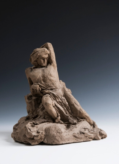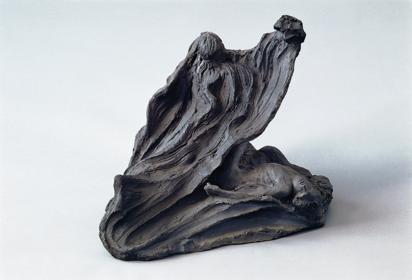 His sculptures, drawings, prints, artist’s books, and texts from that time convey Bílek’s unique interpretation of Christianity, rooted in a mystical world of symbols and allegories. Central to understanding Bílek’s spirituality are two of his seminal artist’s books from this period: Building the Future Temple in Us (1908) and The Journey (1909). These works reflect Bílek’s experiences during his study in Paris in the early 1890s, particularly influenced by the esoteric and then-popular book by French philosopher and essayist Édouard Schuré, Les Grands Initiés / The Great Initiates: A Study of the Secret History of Religions (1889), published in Paris in 1889. The resulting intricate mosaic of religious syncretism, which became the backbone of Bílek’s entire work, was most authentically expressed during this time.