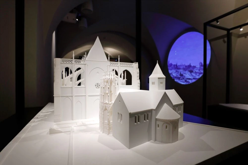 The virtual and tangible models of buildings founded by Charles IV, the housing development within the urban agglomeration, the stone bridge, and other buildings show the appearance of the metropolis changed by Charles IV and other rulers of the House of Luxembourg. Among the attractive exhibits are the model of Vyšehrad, Prague Castle, and St Vitus Cathedral which in Charles IV’s time were used for religious and state purposes. Virtual presentations show the system of town administration as well as the medieval bridge construction. Dramatic stops evoke the atmosphere of the town, its life and some events such as Charles’s birth, his arrival to Prague in 1333, his coronation, and burial. Video mapping of the Prague conurbation model as well as Charles Square and its vicinity presents the building and urban development of the town during the 14th century. Unique archaeological findings and other original objects from the collections of the Prague City Museum, National Heritage Institute (Regional Office in Prague), and other institutions illustrate the everyday life of the town and its inhabitants during the rule of the Luxembourgs. More