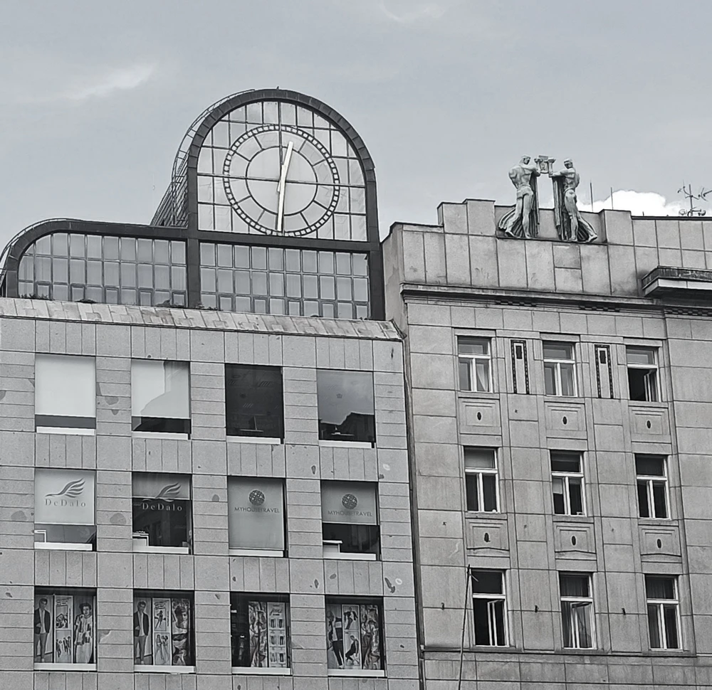 The construction of the metro brought about necessary changes to the lower end of Wenceslas Square. The administrative building project for the ČKD company was assigned to the Šrámek couple; it was on their drafting tables that Prague’s first postmodern building emerged, significantly altering the face of the “Golden Cross” junction. The building’s structure was connected to the Můstek metro station: the first floor housed a grill bar and café, with prominent bay windows facing Wenceslas Square. The next three floors were designated for the ČKD offices. Finally, the roof of the building next to large, illuminated clock became the home of the Modrá Terasa (Blue Terrace) restaurant. In 2003, the building underwent a renovation overseen by Alena Šrámková, which transformed the entrance hall and the first floor into a large commercial space. The rooftop terrace is no longer accessible to the public. Alena Šrámková — Jan Šrámek ČKD Building in Prague at Můstek, 1974—1983 Na Příkopě 1, Praha 1 — Staré Město The building was designed as a universal administrative structure and was renamed the ČKD Building after its tenant before being completed. Jan Šrámek started working on the design without a competition, having received the direct commission in 1972. Just two years later, he invited his wife to join the project, and she transferred to the Prague City Design Institute, Atelier 4 (Delta), partly because of this. Because Jan Šrámek was already battling a serious illness at the time, the completion of the project and construction largely fell on her shoulders. The building immediately drew attention to Alena Šrámková upon its completion. For proponents of postmodernism, which was gaining recognition in Czechoslovakia by the late 1970s (and was almost officially accepted in the 1980s), this was a major challenge. The building closely aligned with the ideas of new functionalism, a kind of “domestic” version of postmodernism rooted in local tradition. The building had both fanatical admirers and staunch critics, going well beyond the generational divide. However, despite expectations of further work on actual buildings, this did not materialise. While the ČKD Building was still under construction, Šrámková began collaborating with Ladislav Lábus on the Lužiny shopping and community centre for Jihozápadní Město (Southwest City Suburb), a project built as part of the comprehensive housing development with basic facilities for each residential complex. Alena Šrámková (1929—2022) She graduated in architecture and civil engineering at the Slovak Technical University in Bratislava (1952), and the School of Architecture at the Academy of Fine Arts in Prague (1958). She worked at Chemoprojekt Bratislava (1952—1954), Stavoprojekt Ústí nad Labem (1954—1955), Potravinoprojekt (1958—1959), the State Trade Project Institute (1959—1975), Atelier 4 at the Prague City Design Institute (1975—1987) and Stavoprojekt Liberec (1988—1990). After 1990, she had her own studio with various collaborators, later renamed Alena Šrámková Architects in 2005. She was a professor at the Faculty of Architecture at the Czech Technical University (from 1991). She received numerous awards, including the Personality of Czech Architecture from the Architects’ Guild (1994), the Czech Chamber of Architects’ Award (2007), the Medal of Merit (2008), and the Ministry of Culture Award for Contribution to Architecture (2010). Jan Šrámek (1924—1978) He worked at Stavoprojekt Žilina (1950—1953), Karel Filsak’s studio within the Prague Regional Project Institute (1954—1958), Konstruktiva architectural studio (1958—1960), Czechoslovak Airlines design studio (1960—1967), as head of the Beta studio at the Project Institute Association (1967—1969), and as director of Atelier 2 at the Prague City Design Institute (1969—1977). Excerpted from the book Architecture 58—89 Publication concept, editor, author of discussions: Vladimir 518 ČKD Building in Prague at Můstek | Photo: Prague City Tourism