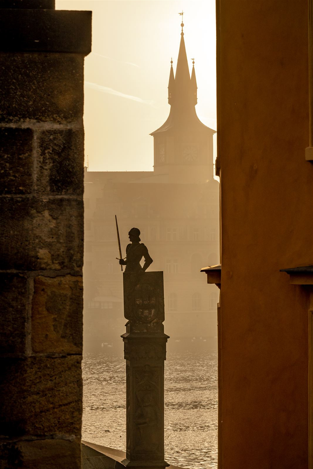 The site of Bruncvík’s statute has a long history dating back to pagan times. At that time, a statue of Perun, the ruler of thunder, probably stood here, at a place where trials were held. The first statue of the stone knight was erected on a pillar of Prague’s stone bridge sometime in the early 16th century. This was done as a sign of the authority of Prague’s Old Town to collect a fee from everyone who arrived in Prague by boat or raft. This right was granted to the Old Town by King George of Poděbrady in 1459. Similar statues of knights, symbolising municipal authority, were erected in many other towns during the Middle Ages. Across Europe, they were called Roland, according to the heroic French knight from Charlemagne’s retinue. In Prague alone, it was Bruncvík. The original Old Town Bruncvík took the form of a bearded old man in a helmet with his face turned towards the river, with a shield bearing the city’s coat of arms and a lowered sword as a sign of peace. It was probably carved by stonemason Matěj Rejsek. When Prague was besieged by the Swedes in 1648, the statue was destroyed by artillery fire. For a long time, only a damaged pillar remained standing on the bridge pier. It was not until 1886 that the statue was restored in its new form by sculptor Ludvík Šimek. Bruncvík | Source: Prague City Tourism The Knight Bruncvík is the hero of an old Czech legend. His story is a variation on the legend featuring the Saxon and Bavarian Duke Henry the Lion of Brunswick, and also features motifs from the adventures of the mythical Odysseus and Sinbad. It is said that the Czech prince Bruncvík took over the reign after the death of his father Žibřid. However, he soon decided to go out into the world to earn the lion in his coat of arms. He visited many wonderful countries and even sailed the seas. One day, he saw a lion fighting a nine-headed snake. The lion was growing weary, so Bruncvík helped him, and together they overpowered the beast. The tamed lion then accompanied Bruncvík on this travels. After seven years, Bruncvík returned to Prague with a lion and a miraculous sword that could behead enemies on its own. The sword is said to be walled up in the bridge pillar on which Bruncvík fixes his gaze. When the Czech lands are at their worst, the knights sleeping in Blaník Mountain will awaken and come to the aid of the Czechs. Saint Wenceslas, patron saint of the Czech lands, will lead the army. His horse will stumble on Charles Bridge and the miraculous sword will leap from the bridge into the prince’s hand. The Czech army will win a glorious victory and the country will be saved. Psychotronicists claim to see a stream of light energy above the statue of Bruncvík, connecting Prague with the spiritual energy of the universe. If you stop on the bridge and linger quietly by the statue for a moment, you may feel this special power too. Many visitors describe this experience as a feeling of calm and serenity.