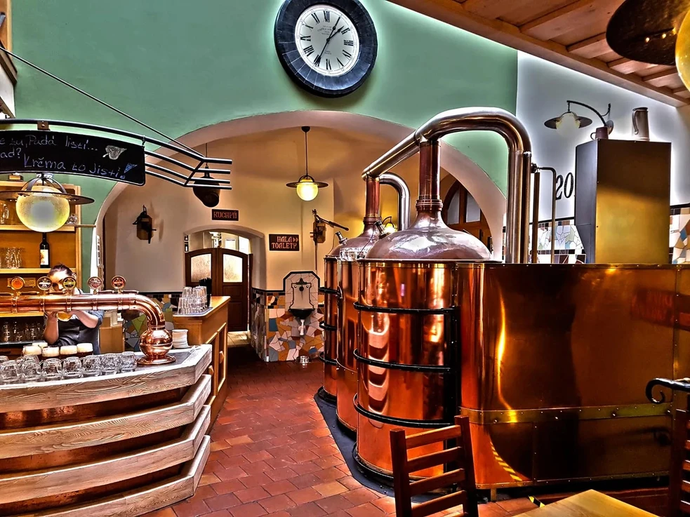 The brewing tradition of the royal town of Slaný dates back to the 16th century, when the venerable burgher Antoš brewed beer on the site. The tradition of brewing beer in Slaný was renewed in 2010 by the founder of a small craft brewery, Mr. Paulík, in the very same place where burgher Antoš used to brew his beer, in a Renaissance building at 14 Vinařického Street in the centre of town. Five years later, the capacity of the brew pub was no longer sufficient, so most of the production was moved to a new facility on Pražská třída street. The beer is tapped directly from the lager cellars, unfiltered and unpasteurised to preserve its unique characteristics of live beer as our ancestors knew it. At the Antošova krčma brewery restaurant, you can taste not only Czech cuisine but also most of the beers from the product range. Source: www.pivovarantos.cz