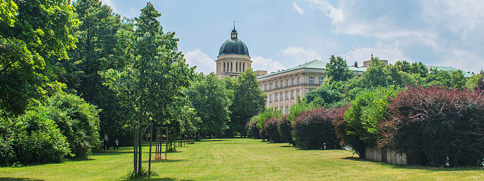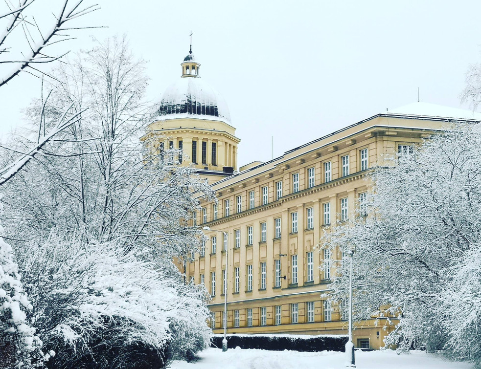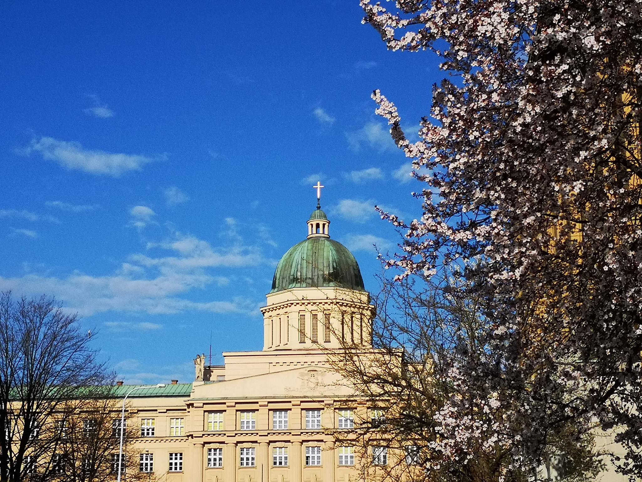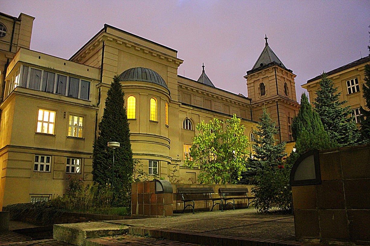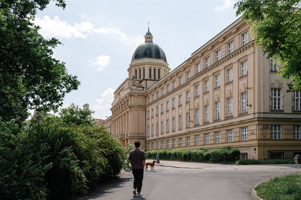 The inadequate space for studies and constant disputes about the housing of the theological faculty in university buildings after World War I were finally resolved by Archbishop František Kordač with the decision to build the Archbishop’s Seminary in Dejvice — a building which has been the seat of the faculty since 1929, with some enforced breaks. The project was entrusted to František Havlen, who designed a four-storey main building with a U-shaped floor plan and a distinctive dome reminiscent of the Church of St. Peter in Rome. He situated a seminary church dedicated to St. Adalbert in the rear. The open space between the side wings and the church is occupied by two seminary gardens.