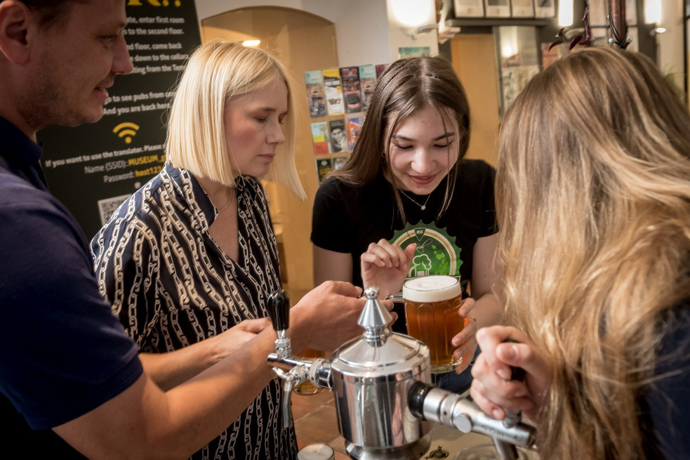 overview opening hours admission about the place The first Museum of Czech beer in Prague opened an exhibition about the history and tradition of Czech brewing on two floors, in several themed rooms. more about the place opening hours january—december mon—sun 10:30—20:30 more about opening hours admission basic 390 CZK more about admission admission basic 390 CZK opening hours january—december mon—sun 10:30—20:30 There is a place here for beer collectibles, the ancient craft of ice cutting, and original bottling machines. A scale model of a brewery explains the process of malt production and beer production itself. In the beautiful cellars of the 13th century building you may taste a number of varieties of Czech beer, either in a pub from the 19th century or in the traditional local from the era of socialism, all within the price of your entry fee.