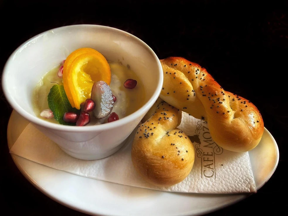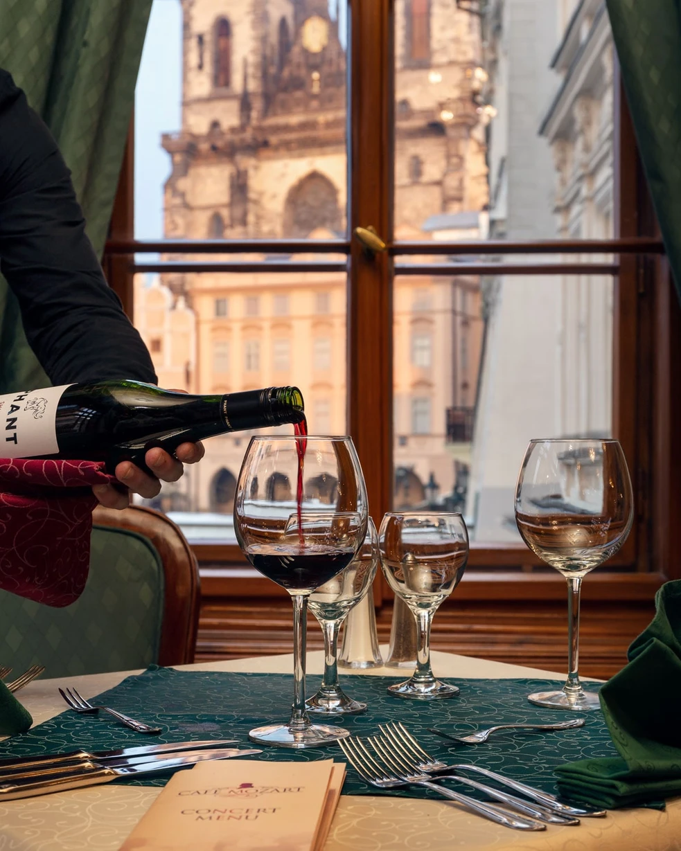 overview opening hours Café Mozart is located on the 1st floor and offers a unique atmosphere thanks to its specific views of the Astronomical Clock and the exhibition of Meissen porcelain. You can get an excellent breakfast, good coffee or chocolate, ice cream, homemade cakes, pastries and other specialties there. opening hours january—december mon—wed 7:30—19:00 thu—sat 7:30—20:00 sun 7:30—14:00 more about opening hours opening hours january—december mon—wed 7:30—19:00 thu—sat 7:30—20:00 sun 7:30—14:00
