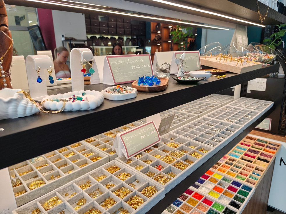 overview opening hours Discover a unique experience in the city centre. At Charm Bar Prague, you can try making your own original piece of jewelry — a bracelet or necklace — and take home a personal souvenir from Prague. Choose from dozens of charms, ranging from zodiac signs and delicate minerals to playful motifs, and assemble the jewelry according to your own taste. Take the finished piece with you immediately. The studio offers a friendly and creative atmosphere where you’ll feel right at home, whether you come alone, with a friend, or with family. Charm Bar Prague is located just a few minutes’ walk from Charles Square (Karlovo náměstí) and the Dancing House. opening hours january—december mon—sun 11:00—19:00 more about opening hours opening hours january—december mon—sun 11:00—19:00