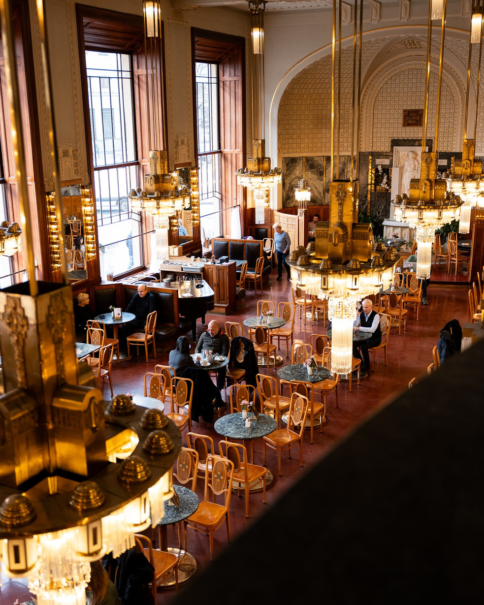 overview opening hours One of the most beautiful cafés in Prague. If you can overlook its openly touristy focus, you’ll be rewarded with a splendid Art Nouveau interior and a respectable selection of cakes. The café is located on the ground floor of the Municipal House, one of the most important Art Nouveau monuments in Prague. Many famous Czech artists and sculptors contributed to the building’s unique décor; a guided tour is highly recommended. opening hours january—december mon—sun 8:00—21:00 more about opening hours opening hours january—december mon—sun 8:00—21:00