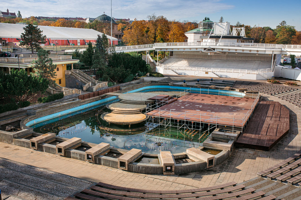 overview about the place One of the most remarkable objects of the Prague Exhibition Grounds is the light fountain, built by the inventor František Křižík. The Křižík Fountain offers a multilayered experience. There is a big amphitheatre that can accommodate more than 6,000 visitors. The fountain works using almost 3,000 water jets, 49 water pumps and 1,300 lights of all colours. The unique water show, lighting effects and wonderful music will enchant you. Nowadays, the venue is used for short-term events — concerts, shows, theater plays or gastronomic events. history The fountain, created by a genius inventor František Křižík for the Jubilee Exhibition in 1891 was a technical miracle of its time. Back then, Křižík used 26 arc lamps, which were his invention, for a fountain of 30 x 40 m. The lamps were under a glass ceiling, and there were about 50 water jets around them. Spurting water was forced via an electrical engine up to several metres high, and strong light sources located under the water surface illuminated it from below, with coloured filters rotating in front of the lights. All that was controlled by a single pump, which in addition controlled other fountains in the surroundings as well. The changing colour of the white-water against the dark sky evoked vibrant impressions. „Fontaine lumineuse“ was well known throughout Europe. During the World War II, the original pool was changed to a fire tank, and over time the entire premises got waterlogged and the building was in emergency. Approximately a hundred years later, on the 15th May 1991, the renewed fountain was put back to operation via the Vltava symphony by Smetana. This was achieved thanks to the Projektový a architektonický ateliér Praha (Projecting and architectural studio in Prague), certified engineer architect Zdeněk Stašek and ing. arch. Milan Honzík. An unforgettable impression is created by 1248 underwater lights with five colour spectres, a water surface of 1,500 m2, with a volume of 1,650 m3. There are about 60 loudspeakers providing for the sound distribution. There are 24 pumps underneath the fountain with an output of 70 l per second and displacement of 20 m. Cables and pipes in an underground corridor distribute water to three thousands of jets. Today, the fountain is controlled by a computer with special custom-made software. New programme is written for each new performance. The visitors may see light and water performances with classical as well as modern music, or staged performances, such as Carmen or Romeo and Juliet, the Swan Lake, the Water Nymph, and many others. In November 2017, after more than 20 years, the Orfeus Agency terminated the fountain’s operation. Currently, the Křižík Fountain is used as a space that is offered to rent for short-term events at the Výstaviště.