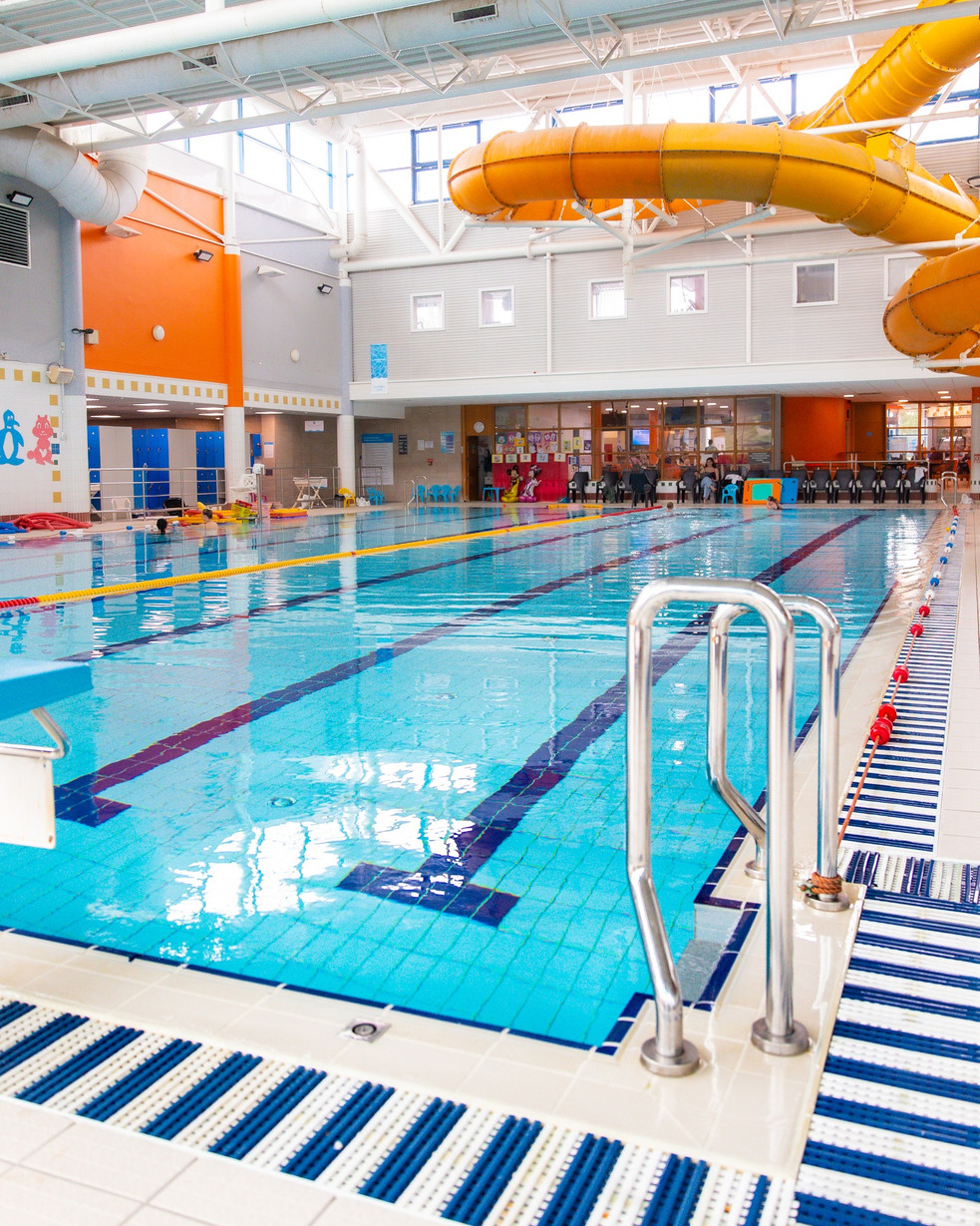 overview opening hours about the place The swimming hall features a 25 m pool. The facility also includes a massage pool, children's wading pool, water slides, and a countercurrent swimming pool. It is barrier free. more about the place opening hours opening hours more about opening hours opening hours opening hours a 25 m swimming pool │ slide chute │ massage pool │ paddling pool with a slide and a small wild river │ . . .