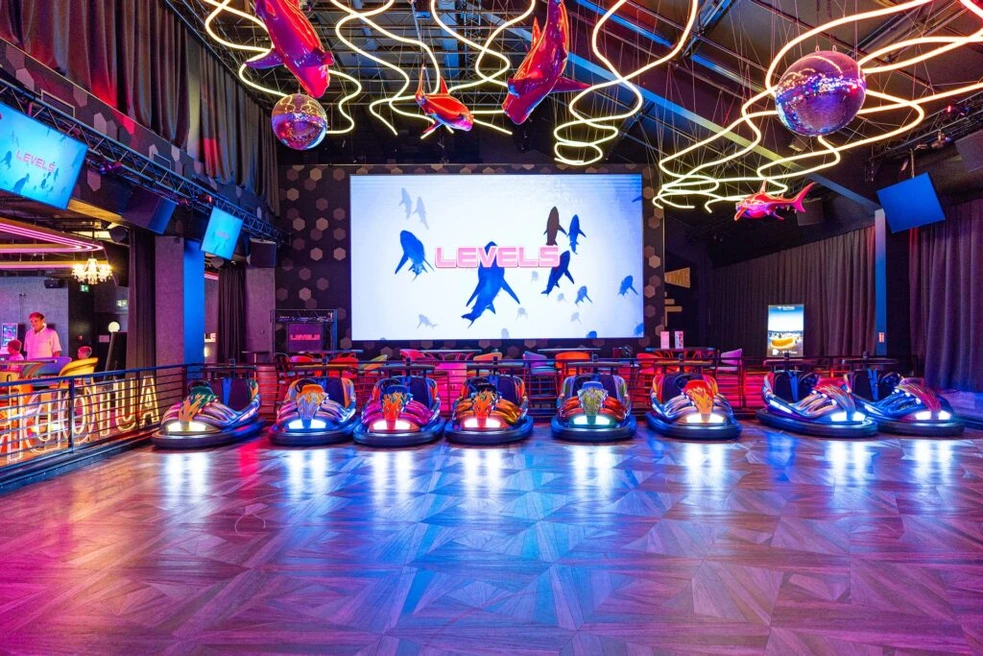 overview opening hours LEVELS Prague, part of the Máj Národní complex, offers a large space dedicated to entertainment, arcade games, and gastronomy. Visitors can enjoy themed bars and restaurants, gaming simulators, and a wide range of activities such as mini golf, bumper cars, karaoke, billiards, darts, and bowling. With more than 200 arcade games, LEVELS ranks among unique entertainment concepts on a European scale. opening hours january—december sun—thu 10:00—0:00 fri—sat 10:00—2:00 more about opening hours opening hours january—december sun—thu 10:00—0:00 fri—sat 10:00—2:00