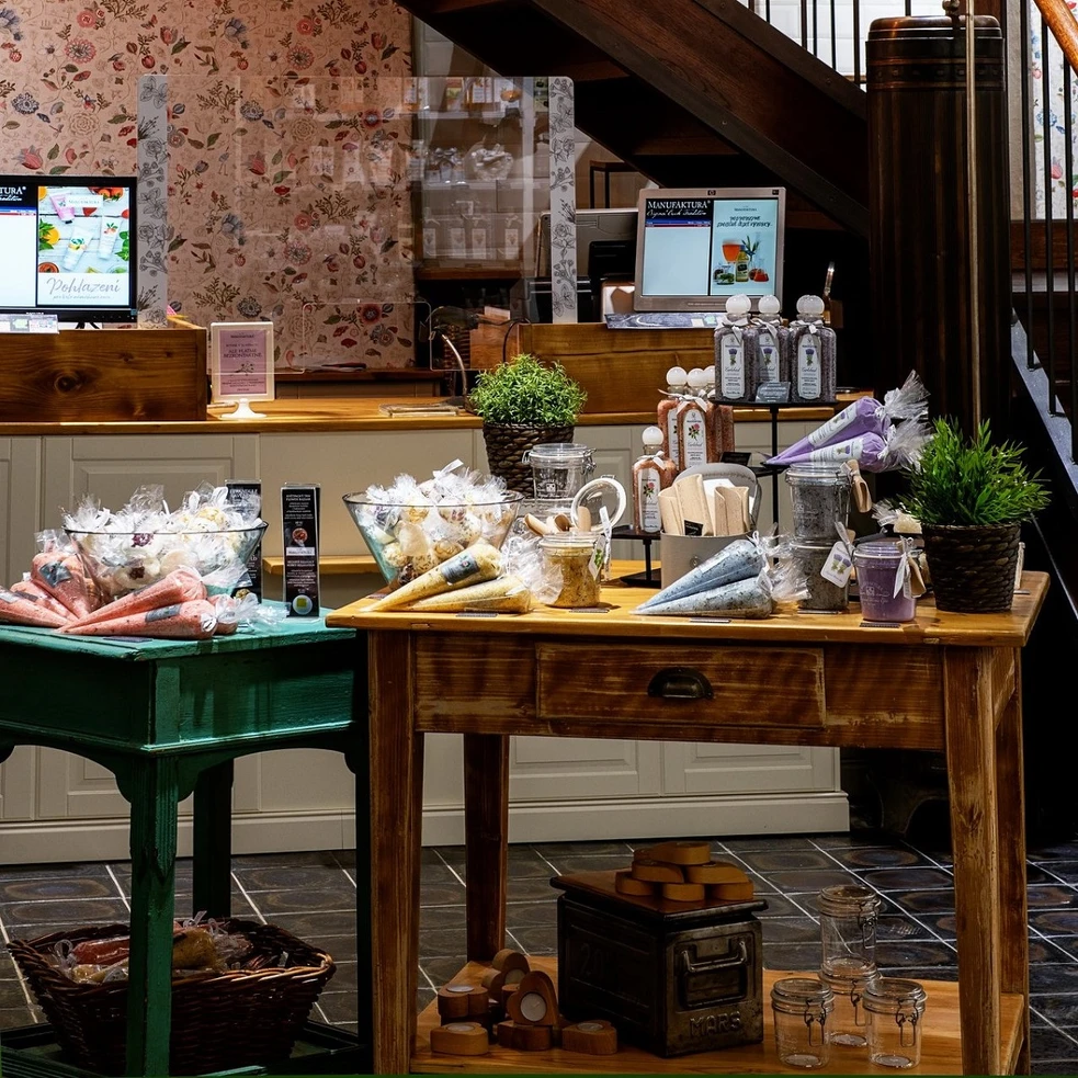 overview opening hours about the place Situated along the Royal Route, this shop offers traditional handicrafts. It offers wooden items including toys, straw decorations, natural cosmetics, ceramics, linen, handmade paper and more. It's an ideal place to choose gifts and souvenirs. more about the place opening hours january—december mon—wed 10:00—19:00 thu—sat 10:00—20:00 sun 10:00—19:00 more about opening hours Source: www.manufaktura.cz opening hours january—december mon—wed 10:00—19:00 thu—sat 10:00—20:00 sun 10:00—19:00 Stores