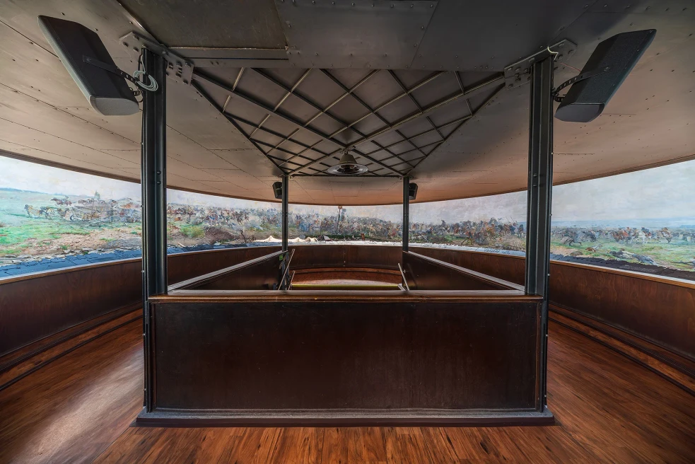 overview opening hours admission The round building in the Exhibition Grounds is the home of a remarkable work painted by the Czech artist Luděk Marold between 1897 and 1898 — a panoramic painting of the Battle of Lipany, which took place on May 30, 1434. At 11 m high and 95 m long, it’s the largest Czech painting of a historical event. The panorama is enhanced by real items that lend a three-dimensional effect to the painting. opening hours april—september mon—wed closed thu—sun 9:00—12:30 13:00—17:30 Open on public holidays. more about opening hours admission basic 50 CZK reduced 25 CZK family 100 CZK Children under 6 years have free admission. more about admission admission basic 50 CZK reduced 25 CZK family 100 CZK Children under 6 years have free admission. opening hours april—september mon—wed closed thu—sun 9:00—12:30 13:00—17:30 Open on public holidays.