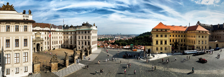 overview programme about the place The Salmovský Palace at Hradčanské square is an exhibition venue of the National Gallery Prague. In the basement there are held long-term exhibitions. Source: Národní galerie Praha Related streets, squares & plazas Hradčanské Square Hradčany galleries National Gallery Prague — Schwarzenberg Palace Hradčany statues, monuments & memorials Statue of Tomáš Garrigue Masaryk Hradčany czech traditional cuisine Kuchyň Hradčany castles & chateaux Prague Castle Hradčany streets, squares & plazas Nerudova Street Malá Strana old masters & ancient art The Art of Asia Across Space and Time National Gallery Prague — Salm Palace history Salmovský Palace (Small Schwarzenberg Palace) A three-wing building of a palace type was built as a Classicist new building with visible influence of the Empire style via a radical reconstruction of older residences within the years 1800 – 1811. These residences were namely the Renaissance palace of Pavel Sixt Trautsohn and the Lords of Šternberk, which were joined together by František Matyáš Karel of Šternberk before 1648 and after him Václav Count Paar. In 1770, both houses were purchased by JUDr. Josef Bretfeld, and in 1795, he conveyed them onto the Prague Archbishop Vilém Florentin, Prince Salm-Salm. He had both the houses rebuilt in the years 1810 – 11 and built a palace according to a project of his architect František Pavíček (Pawitschek). However, the Archbishop died in the meantime, and five years later, the palace was acquired by Josef, Count Schwarzenberg, and he added it as a residential complement to his neighbouring large Renaissance palace. Later on, the palace was used by the Krumlov primogeniture of the Schwarzenbergs as their Prague residence until 1945. After the war, it was nationalized and used for foreign services. Since 2003, it has been under the administration of the National Gallery. An extensive reconstruction took place in the years 2008 – 2012. The palace has a small pre-yard in a French style (cour d’honneur), closed from the square only via a mighty trellis with a trellis gate.