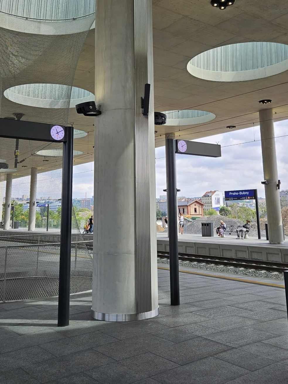 The new European-standard Praha-Bubny railway station has been serving passengers on the line to Kralupy nad Vltavou and on to both Ústí nad Labem and Kladno since August 2025. Trains run right inside the station building in this, the most modern railway station in the Czech Republic. It is 250 metres long and 50 wide and stands on pillars, as does the kilometre-long upgraded line section. The train station connects to the Vltavská metro station (line C). Passengers can access the trains via escalators and lifts, there are glass waiting rooms on the platforms, while inside the station there are trees with an automatic irrigation system. There is also a public viewing terrace open from 15:00 to 18:00 from Monday to Saturday. accessibility The entire station is fully wheelchair accessible.