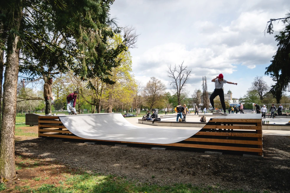 overview opening hours One of Prague’s best skate parks is located in the heart of Stromovka. At the rear of the Exhibition Grounds, there is a smooth monolithic concrete area covering 1,400 m², which is primarily used for skateboarding and other roller sports but also plays host to streetball and inline hockey. The park components are made of concrete and sheet steel. There is also a steel mini ramp set outside the area, shaded by trees. Nearby, there are pre-fab facilities with toilets, showers and lockers, as well as a café with a terrace where you can recharge your batteries, top up your fluids and enjoy a drink and a bite to eat. opening hours free admission, open daily more about opening hours opening hours free admission, open daily