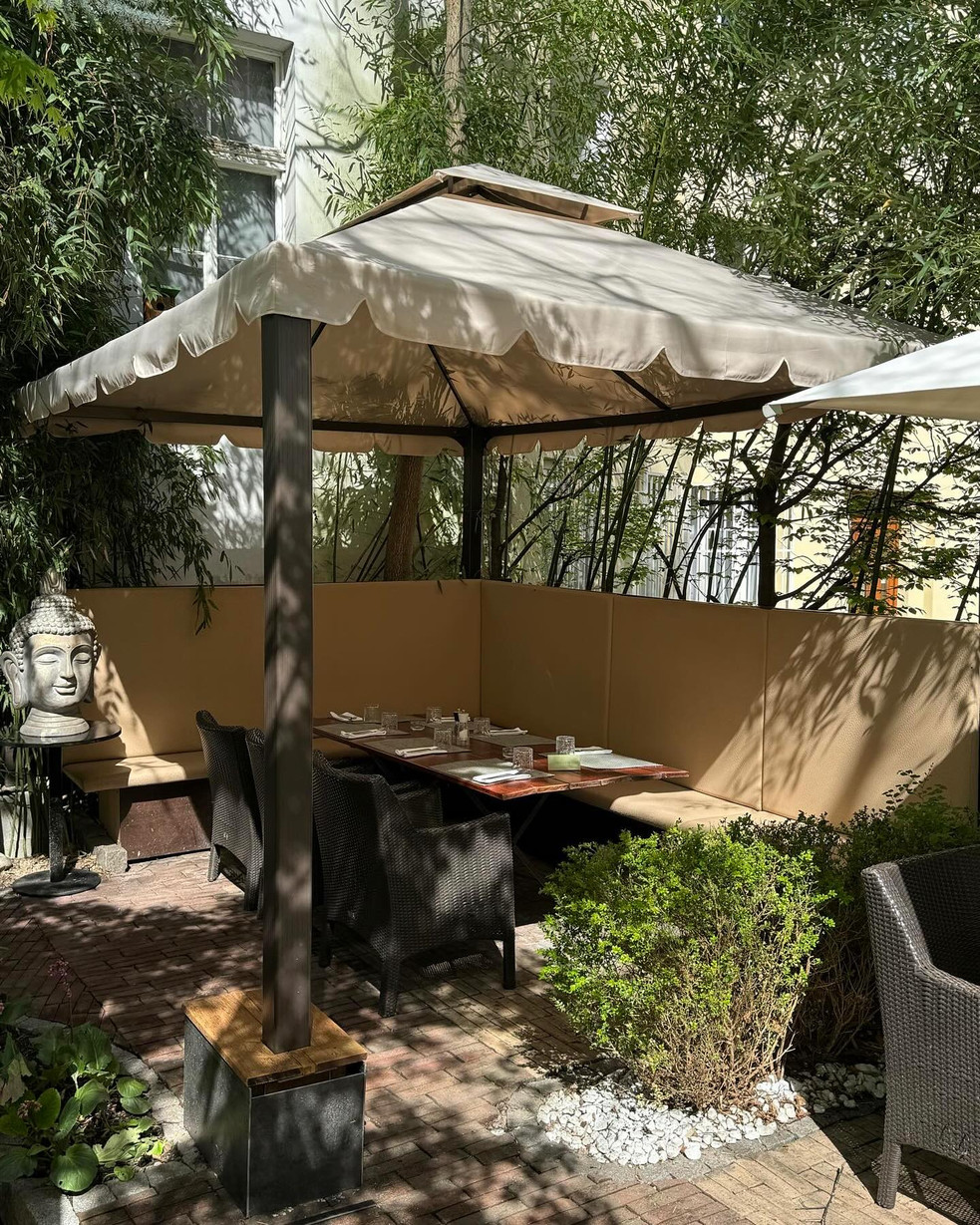 overview opening hours The "Green garden" is a restaurant and coctail bar, that will captive you by with its friendly atmosphere. It's a place where you can enjoy Mediterranean cuisine. The restaurant is dominated by a winter garden with fireplace and view into palm garden with a pond with stugeons and Koi carps. opening hours january—december mon—sun 11:00—23:00 more about opening hours opening hours january—december mon—sun 11:00—23:00