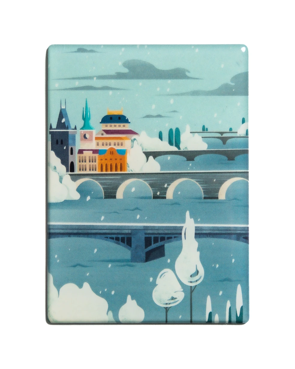 Prague is beautiful all year round. Winter, however, is the most romantic season! Our winter magnets feature charming original illustrations inspired by magical views of Prague at night: Lesser Town Bridge Towers, Old Town Square with Týn Church and Christmas tree, and Vltava River Bridges.