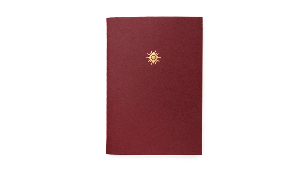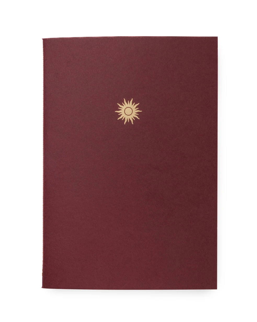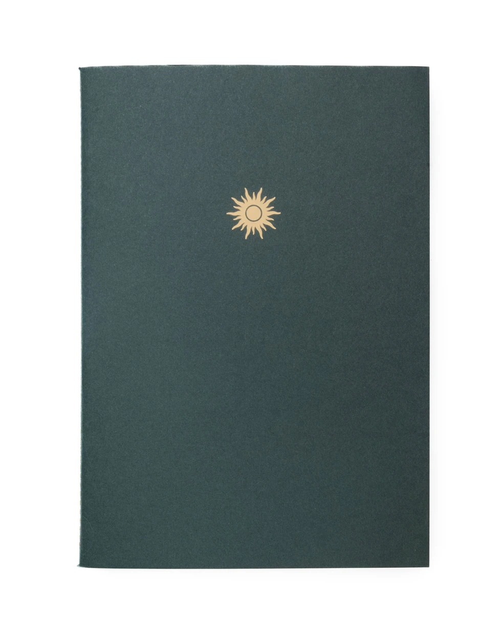 The cardstock cover of our elegant notebook is adorned with a delicate sun in gold. The notebook with exposed thread stitching on the spine has ivory blank pages waiting for you to step up your note-taking or drawing game. Enjoy brief historical facts on the flyleaf as an extra.