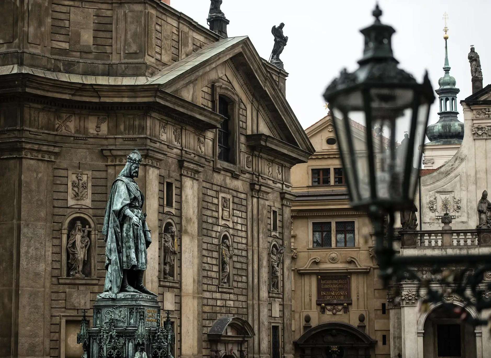Nella costruzione della Città Nuova Carlo IV si preoccupò di includere monasteri e chiese che richiamassero in qualche modo Roma o persino la sua esperienza mistica personale. La consacrazione sacra della nascente città di Praga trovò espressione in una croce immaginaria formata dall’unione di sei chiese della Città Nuova, attraverso la quale la città nascente venne di fatto benedetta. Al centro delle linee che si intersecano sorge la chiesa di Sant’Apollinare. Il braccio verticale della croce è formato dalla linea che collega la chiesa di Santa Caterina, la chiesa dell’Annunciazione della Vergine Maria in via Na Slupi e la basilica dei Santi Pietro e Paolo a Vyšehrad. Il braccio trasversale della croce è definito dalla linea che unisce il monastero di Emmaus e la chiesa di Karlov. Ognuna di queste chiese è inoltre legata a Carlo IV in quanto capo secolare dell’impero cristiano oppure a momenti significativi della sua vita. La chiesa dedicata a Sant’Apollinare rimanda alla città italiana di Ravenna, dove Sant’Apollinare fu vescovo e che per un certo periodo fu sede degli imperatori romani. La chiesa dell’Assunzione della Vergine Maria e di San Carlo Magno a Karlov è dedicata al primo imperatore medievale del Sacro Romano Impero, Carlo Magno, e con la sua pianta ottagonale richiama la forma della chiesa dell’incoronazione ad Aquisgrana, dove Carlo Magno è sepolto e dove anche Carlo IV fu incoronato re dei Romani. La chiesa di Santa Caterina, con la sua dedicazione, fa riferimento alla prima grande battaglia presso San Felice in Italia, nella quale il giovane Carlo ottenne la vittoria nel giorno della festa di Santa Caterina. Da quel momento la considerò la sua patrona personale. Un significato speciale nella rete dei santuari della Città Nuova aveva per Carlo IV il monastero di Emmaus, dedicato a Sant’Adalberto, a San Procopio, ma anche ai Santi Cirillo e Metodio e a San Girolamo, considerato anch’egli uno slavo. A ciò si collegava il fatto che Carlo IV invitò nel monastero monaci benedettini croati affinché vi coltivassero la liturgia in lingua paleoslava. In questo modo si ricollegavano all’eredità di Cirillo e Metodio e di Procopio, che era stato abate del primo monastero ceco con liturgia slava a Sázava. Il memorabile Vyšehrad, con la basilica dei Santi Pietro e Paolo, era percepito da Carlo IV come il luogo della vita e del governo dei suoi antenati leggendari, soprattutto Přemysl l’Aratore, fondatore della dinastia dei Přemyslidi, da cui proveniva sua madre Elisabetta di Boemia. Per questo Vyšehrad ebbe un ruolo importante nel cerimoniale di incoronazione che Carlo IV stesso redasse e rispettò. Alla vigilia della sua incoronazione a re di Boemia, Carlo IV ricevette simbolicamente a Vyšehrad i calzari di rafia e la bisaccia di Přemysl l’Aratore, come diretto successore della sua eredità. Carlo IV. | Fonte: Prague City Tourism L’ultimo dei sei edifici è la chiesa dell’Annunciazione della Vergine Maria in via Na Slupi con il convento dei Serviti. L’ordine fiorentino dei Serviti, ossia dei Servi di Maria, era ben conosciuto da Carlo IV, poiché durante uno dei suoi viaggi soggiornò presso di loro a Firenze in un periodo di malattia. Secondo la leggenda promise che, in segno di gratitudine per la guarigione, avrebbe fondato un convento dei Serviti anche a Praga. Anche le altre chiese della Città Nuova fondate da Carlo IV recano simili riferimenti spirituali a Roma o al Sacro Romano Impero. Sul sito dell’attuale casa U Hybernů Carlo IV fondò il monastero di Sant’Ambrogio, che trova il suo modello nella basilica omonima dove Carlo IV fu incoronato con la cosiddetta corona ferrea dei re longobardi. La chiesa di Sant’Enrico in via Jindřišská rimanda alla città bavarese di Bamberga, dove sono sepolti l’imperatore Enrico e sua moglie Cunegonda, forse l’unica coppia di sovrani mai canonizzata. E la chiesa di Santa Maria della Neve nella Città Nuova rimanda alla più antica basilica romana di Santa Maria Maggiore.
