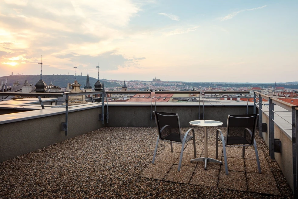 Hotel Ankora is located in the heart of Prague, right next to the I. P. Pavlova metro station. It offers comfortable rooms and apartments in the city centre, just a 10-minute walk from Wenceslas Square. Enjoy a peaceful and comfortable stay in modern rooms or spacious apartments and studios. Thanks to high-quality soundproof windows, you can relax without disturbance. Some rooms on the upper floors feature a private terrace with a unique view of Prague, including Prague Castle, the National Museum and Petřín Tower. number of rooms: 45 & 17 apartments member of Czech hotel group Old Town Hotels