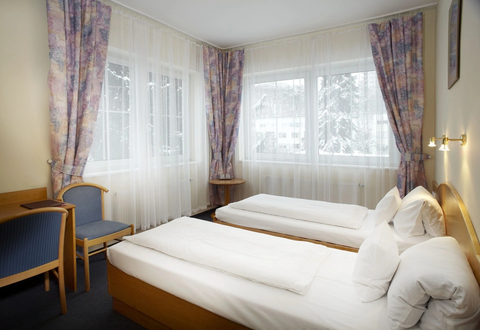 Stay at the cozy Pension Kern in a quiet residential neighborhood in Prague 5, close to green spaces. Right next to the building is the U Měchurky bus stop, where you can easily catch a bus to the metro and reach the city center in about 30 minutes. The comfortable rooms feature private bathrooms.